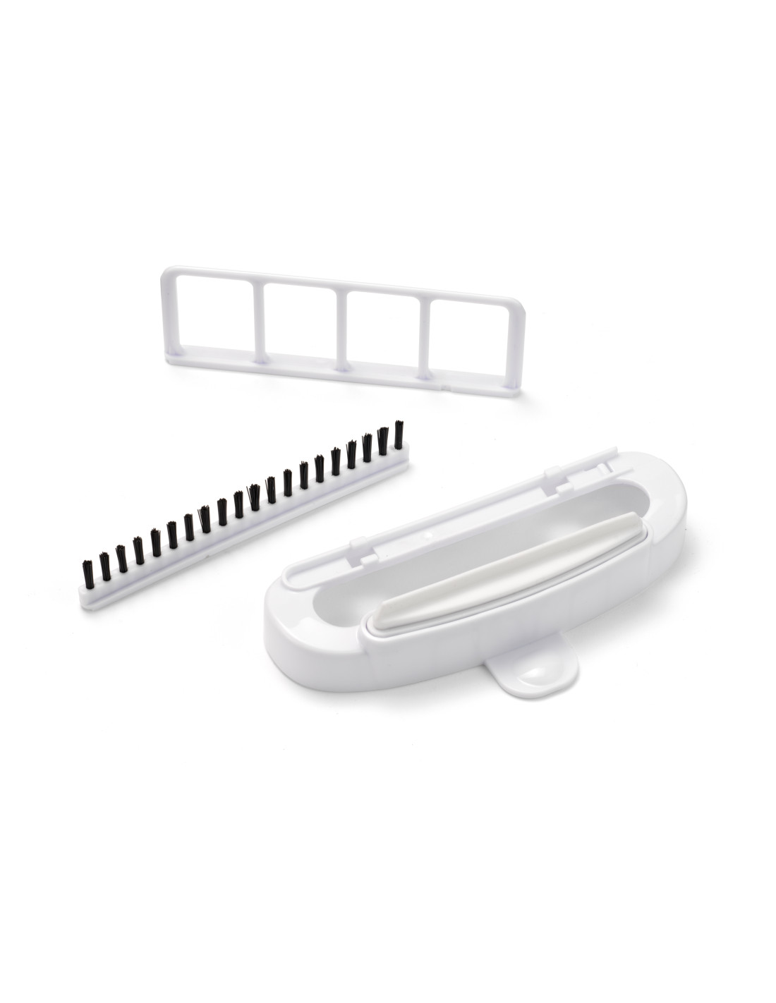 Komplekti kuulub silikoonpael, mis tõmbab kanga tihedaks paremate tulemuste saavutamiseks, õrnade kangaste distants kanga servade ja peente kangaste kaitsmiseks ning harjastega hari, mis tagab auru tungimise kiududesse, pakkudes täiuslikku viimistlust isegi rasketele kangastele.