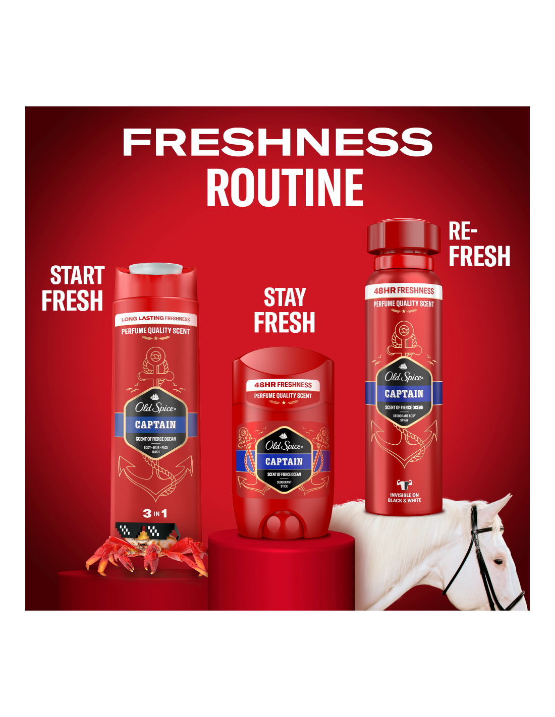 - Vabastage nähtamatu värskuse võimsus. Meeste deodorant Old Spice on nagu värskuse ninja: see hoiab teid terve päeva suurepäraselt lõhnamas, jätmata samas nähtavat jälge valgetel või mustadel riietel.