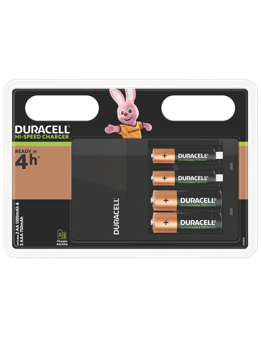DURACELL kiirlaadija laeb 4 AA akut 4 tunniga (ligikaudu 90% laetud kui kasutad DURACELL 1300mAh AA NiMH akusid, ligikaudu 80% laetud kui kasutad DURACELL 750mAh AAA NiMH akusid).