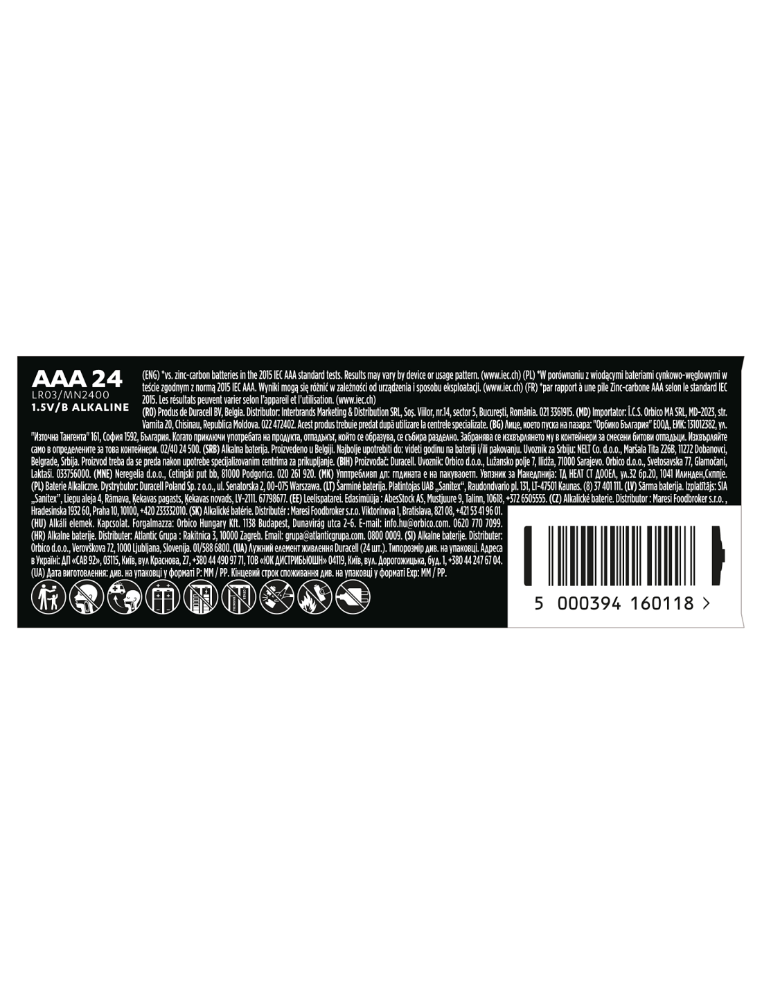 DURACELL AAA-tüüpi leelispatareid, 24 tk pakis.