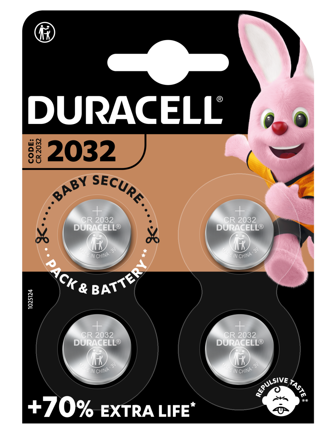 DURACELL 2032 liitiumpatareid on pakendatud avamiskindlasse kahepoolsesse blistrisse, mida on lapsel ilma käärideta võimatu avada. Lisaks on patareid kaetud kibeainega Bitrex®, et vältida nende allaneelamist.