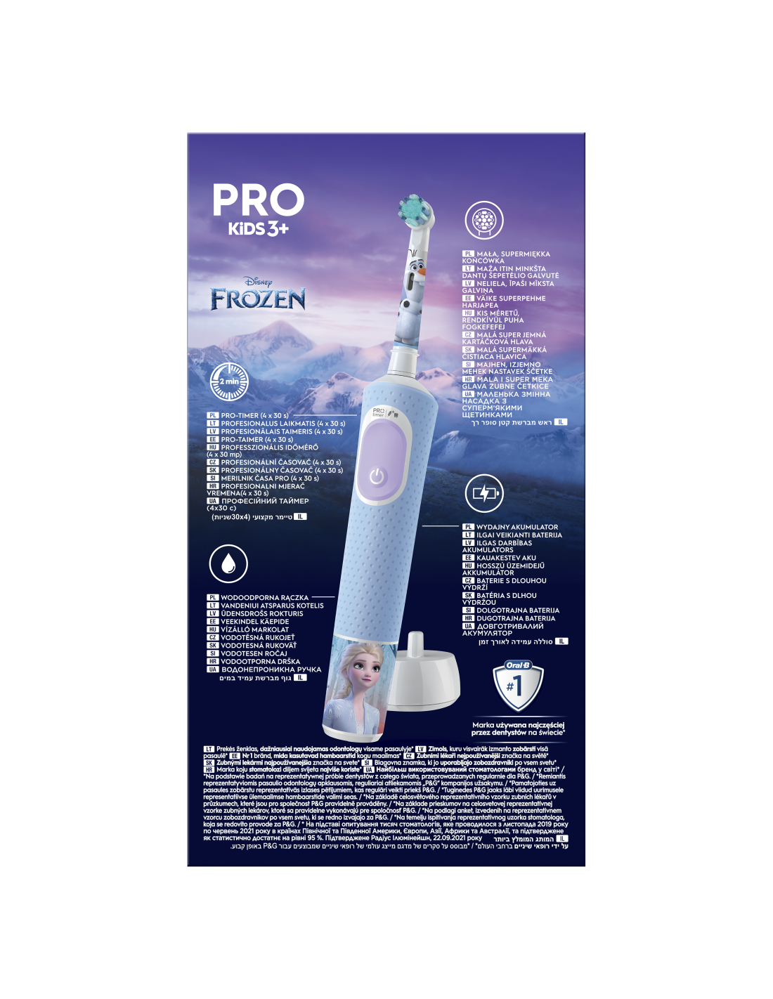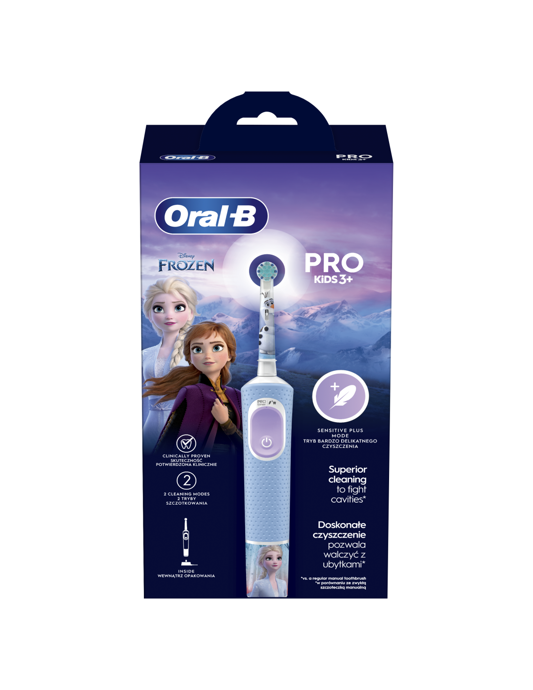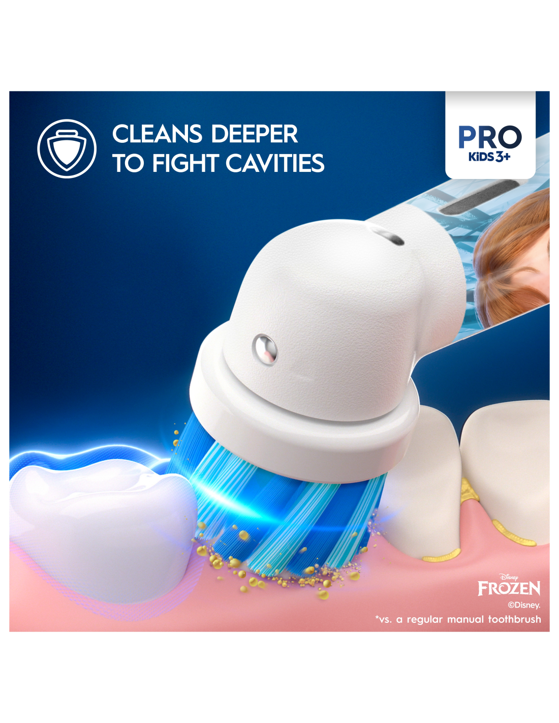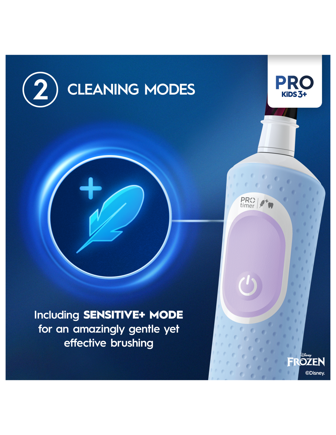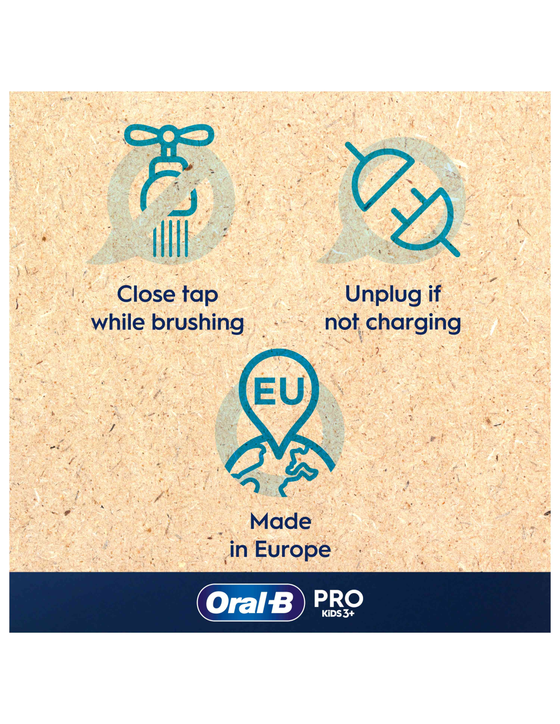 Oral-B Pro Kids elektriline hambahari, mida hambaarstid soovitavad lastele alates 3. eluaastast, tagab õrna ja tõhusa puhastuse. Kahe harjamisrežiimiga, sealhulgas ainulaadne lapsesõbralik režiim tundlike hammaste jaoks, puhastab see hambahari õrnalt laste hambaid. See eemaldab rohkem hambakattu kui tavaline manuaalne hambahari. Kaasas on neli temaatilist kleebist, mida saab kasutada käepideme kohandamiseks.