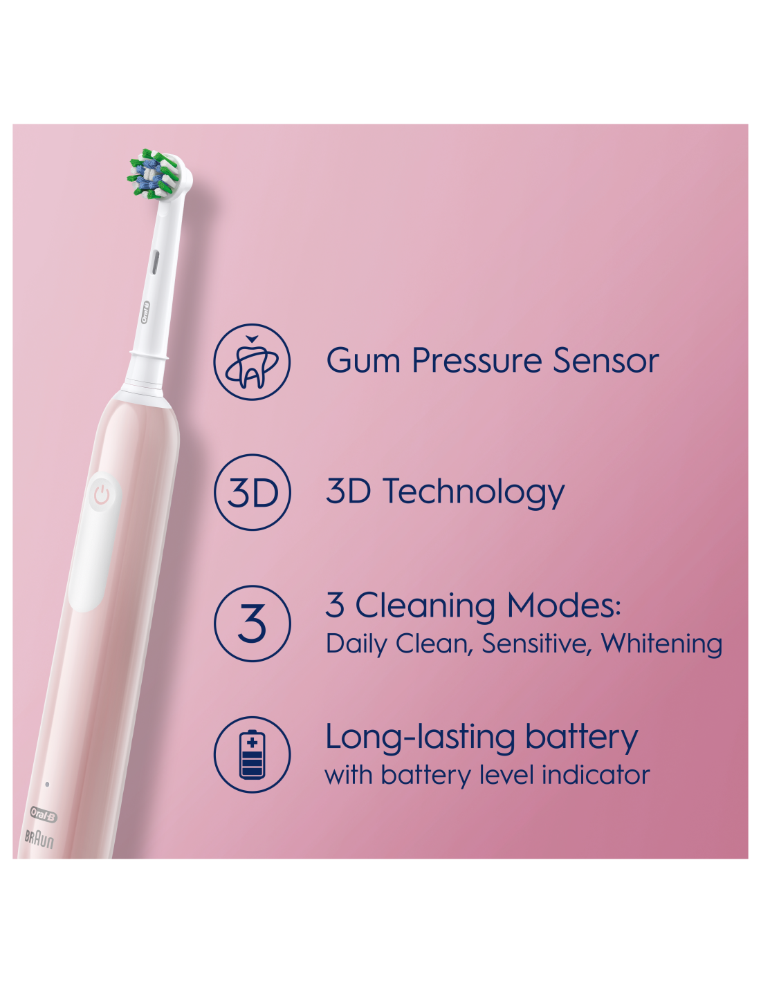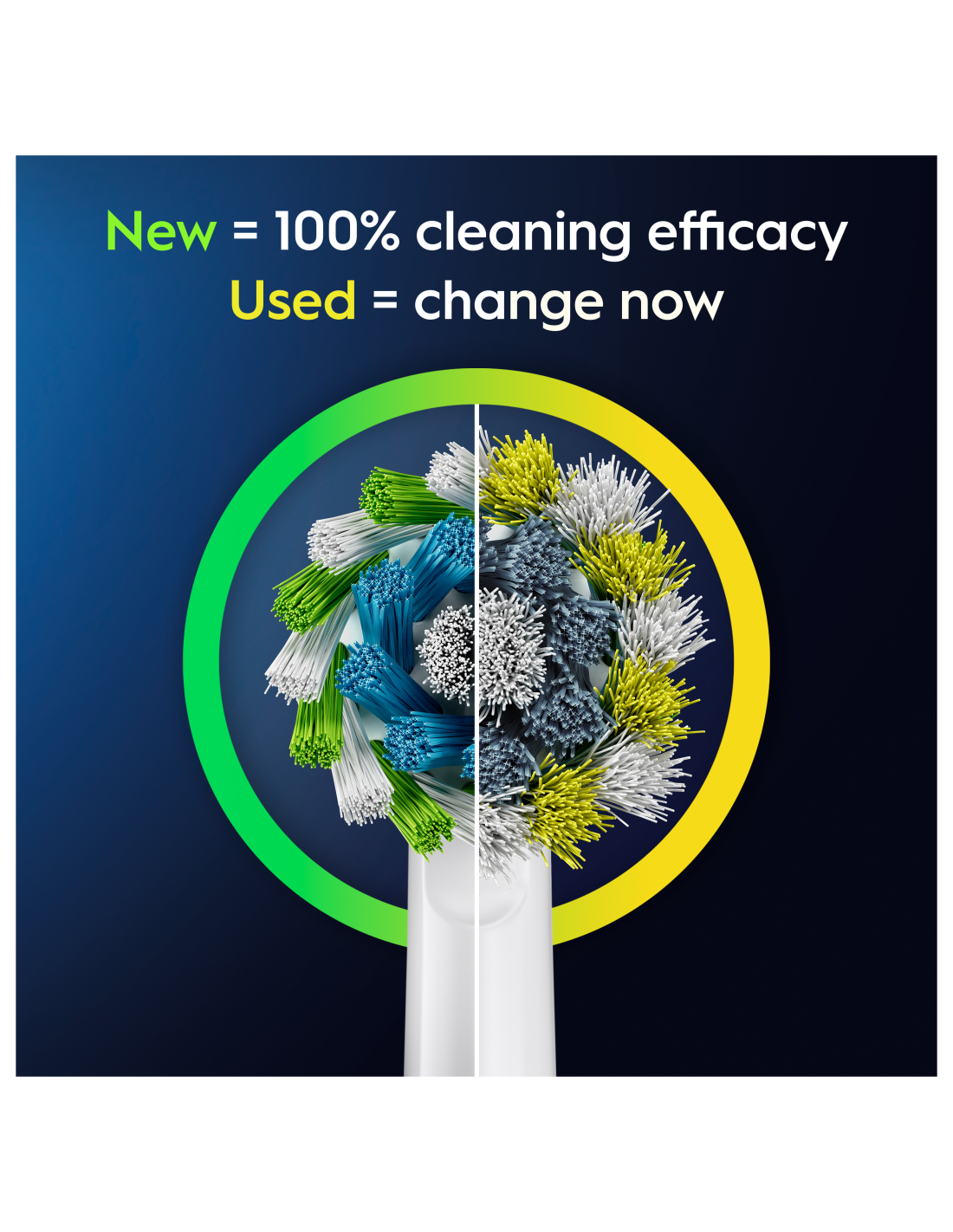Oral-B ümmargune pea ümbritseb igat hammast puhtamate hammaste ja tervemate igemete jaoks, eemaldades kuni 100% rohkem hambakatu võrreldes käsihambaharjaga.