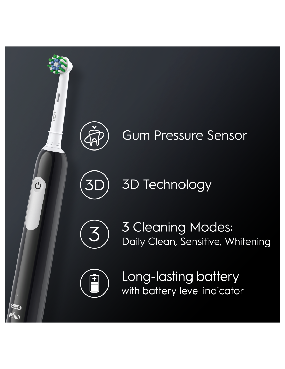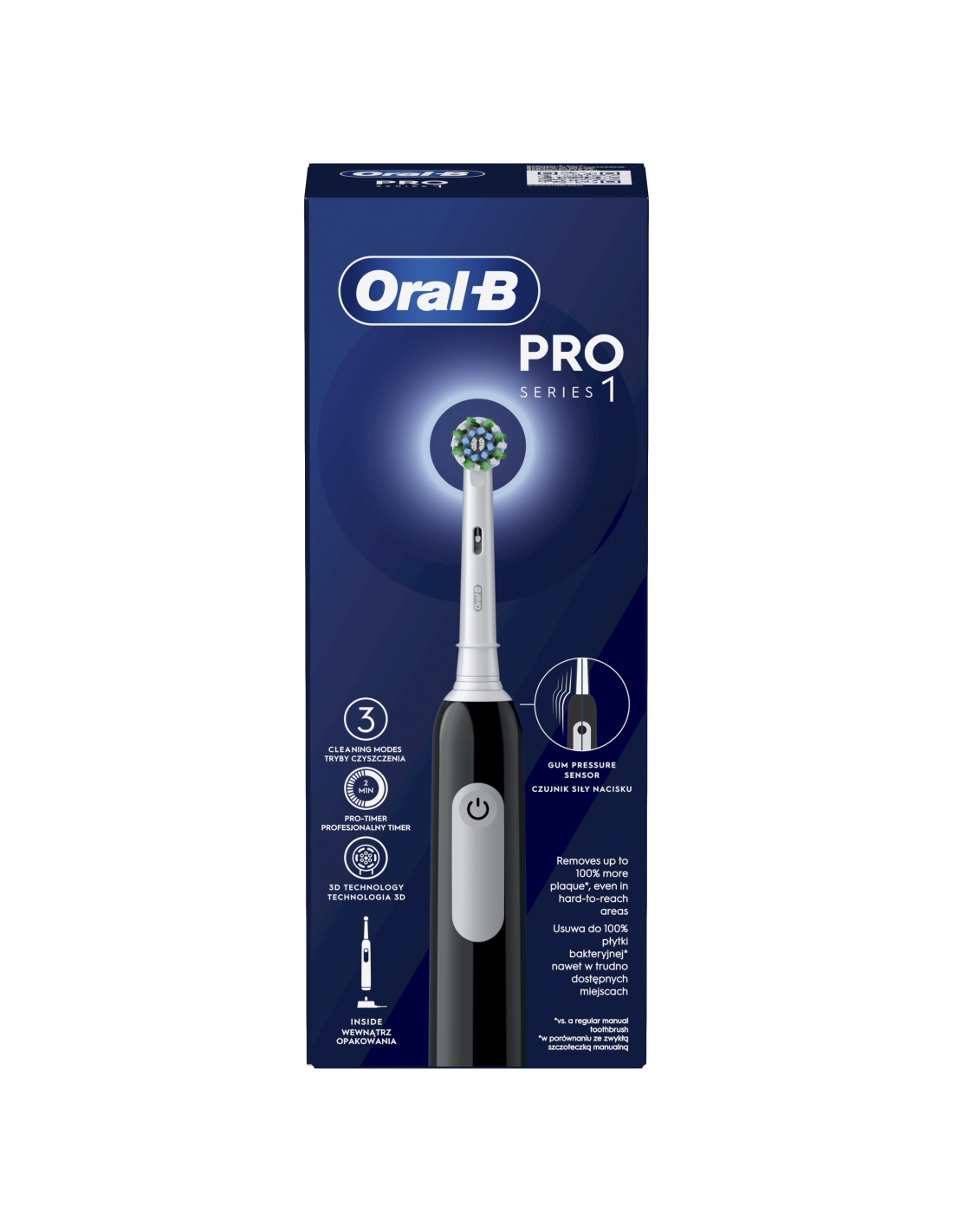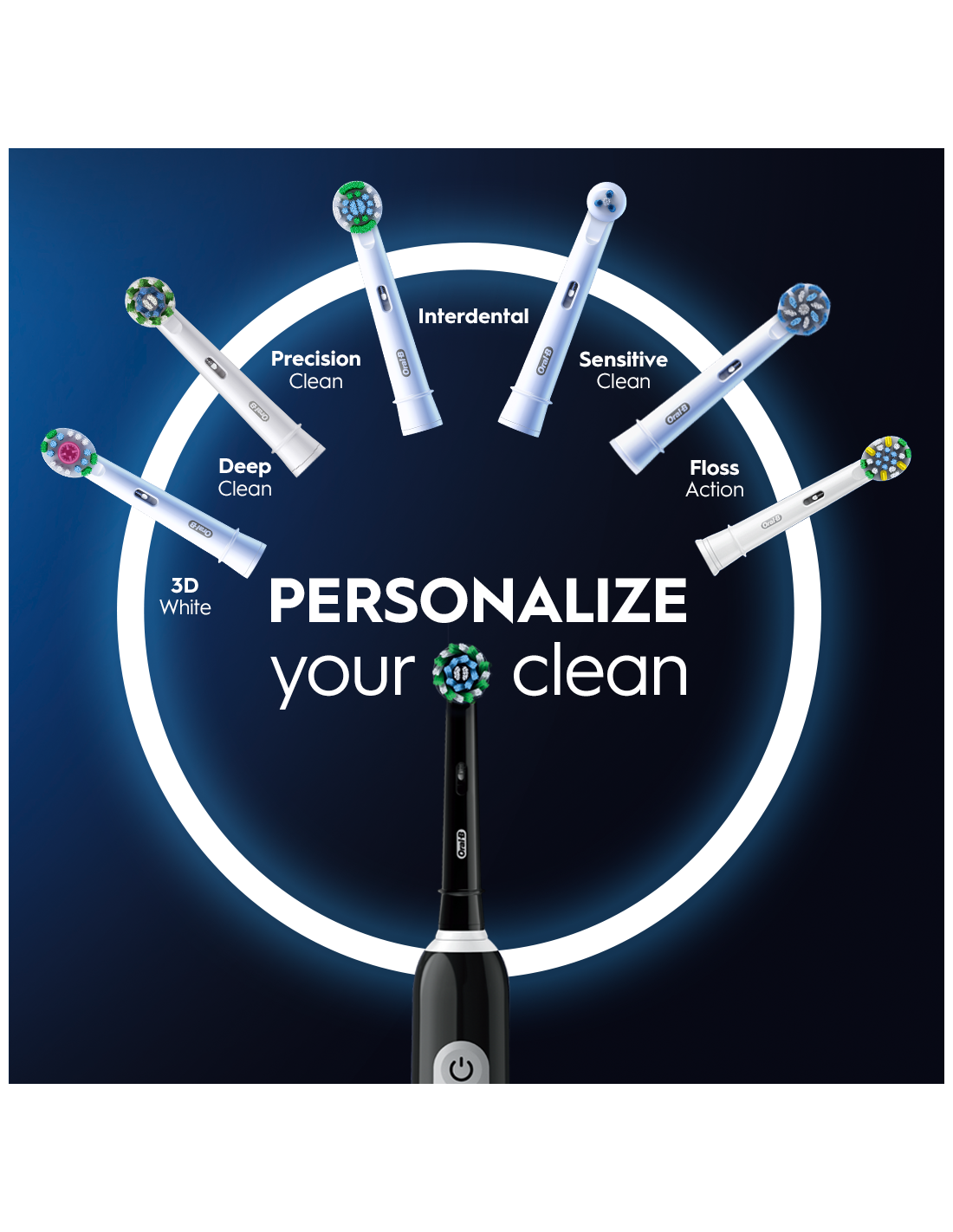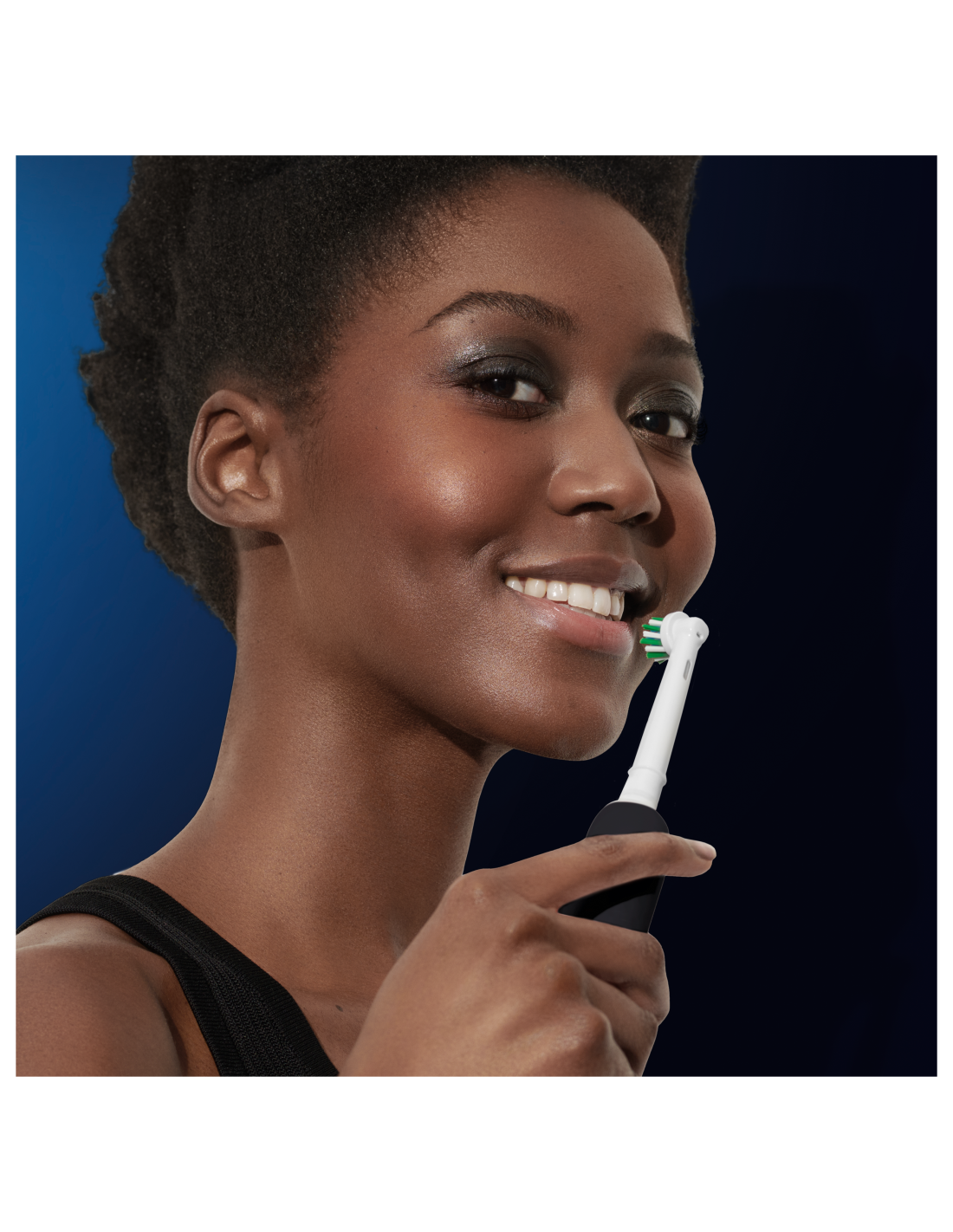 Oral-B ümmargune pea ümbritseb igat hammast puhtamate hammaste ja tervemate igemete jaoks, eemaldades kuni 100% rohkem hambakatu võrreldes käsihambaharjaga.