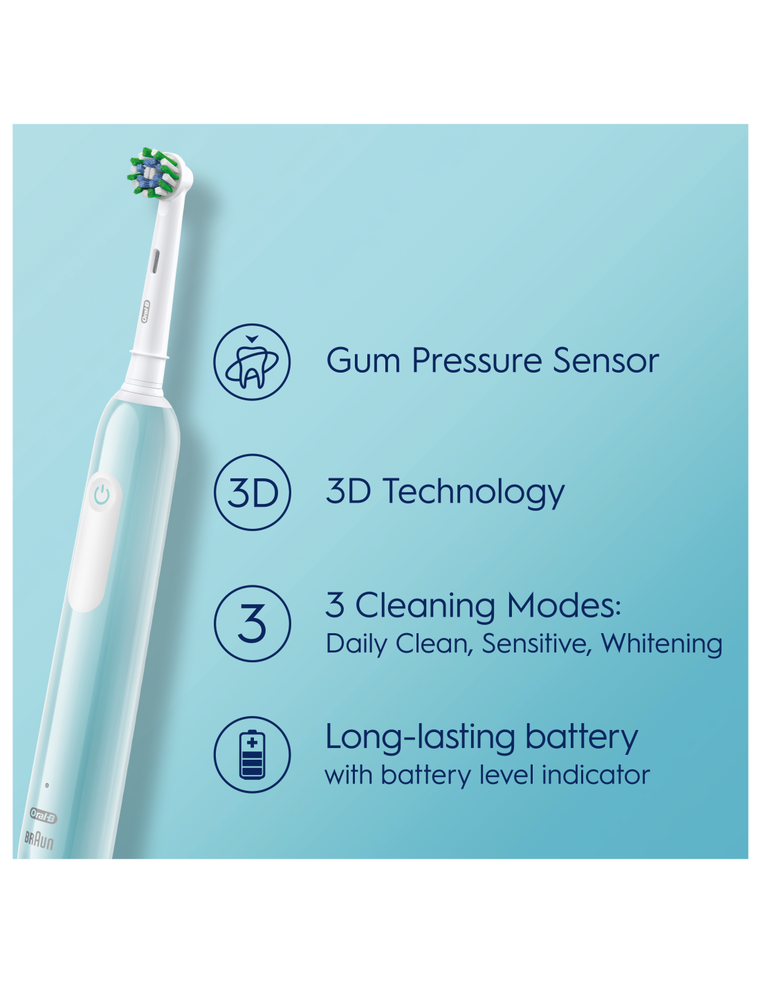 Oral-B ümmargune pea ümbritseb igat hammast puhtamate hammaste ja tervemate igemete jaoks, eemaldades kuni 100% rohkem hambakatu võrreldes käsihambaharjaga.