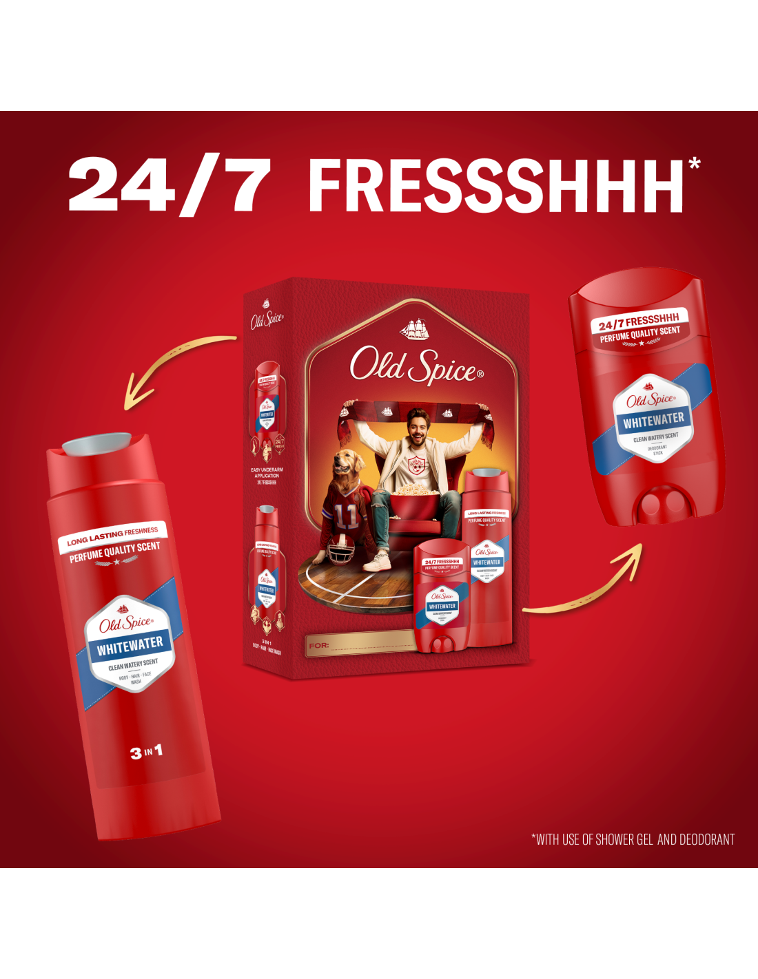 lase valla uskumatul värskusel 24/7* Old Spice’i kingituskomplektidega! (*kasutades dušigeeli ja deodoranti),
