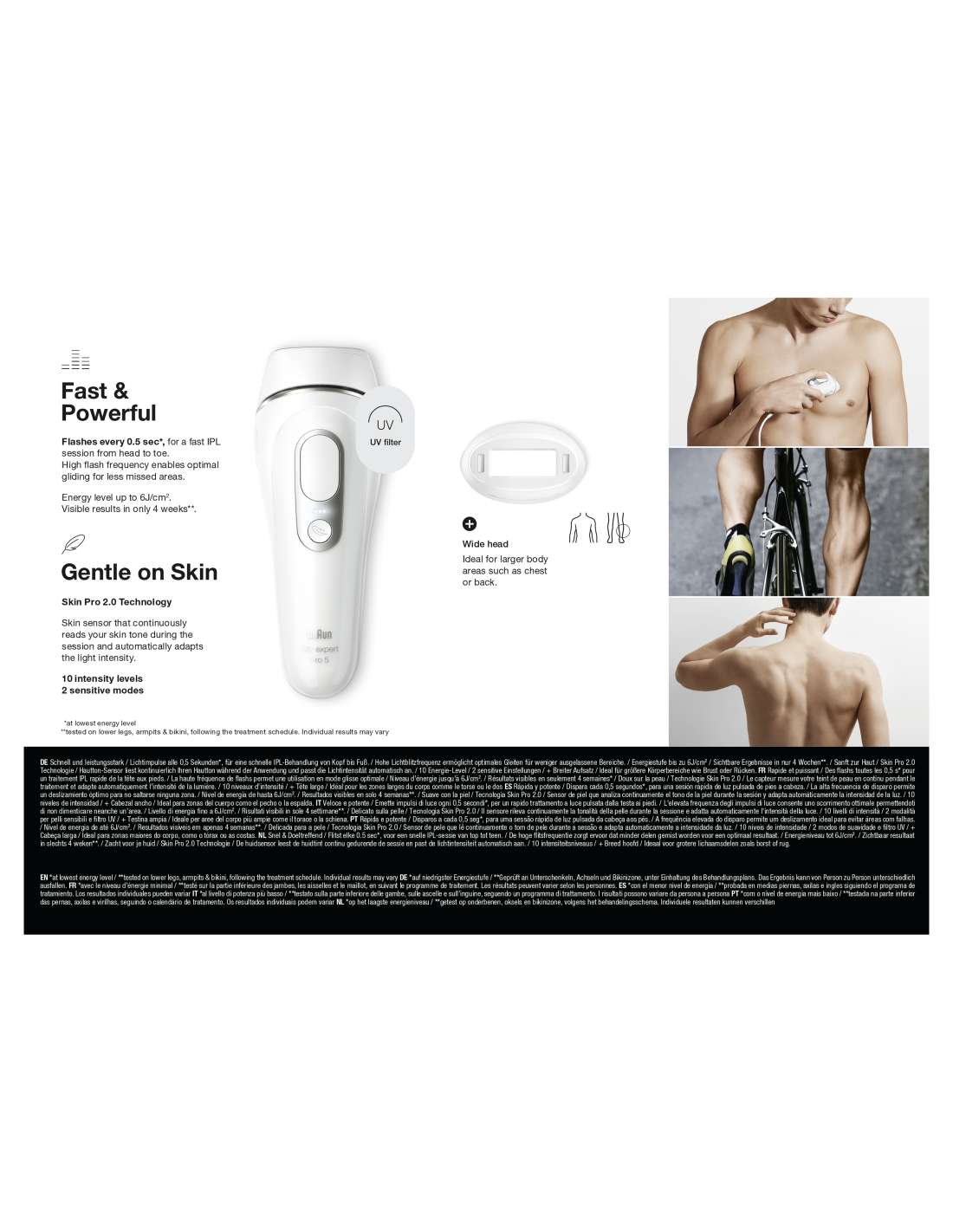 Nahatoon on kogu kehas erinev, nii et Skin pro 2.0 andur (UV-filtriga) loeb pidevalt teie nahka ja kohandab automaatselt iga sähvatuse võimsust teie erinevate kehapiirkondadega.