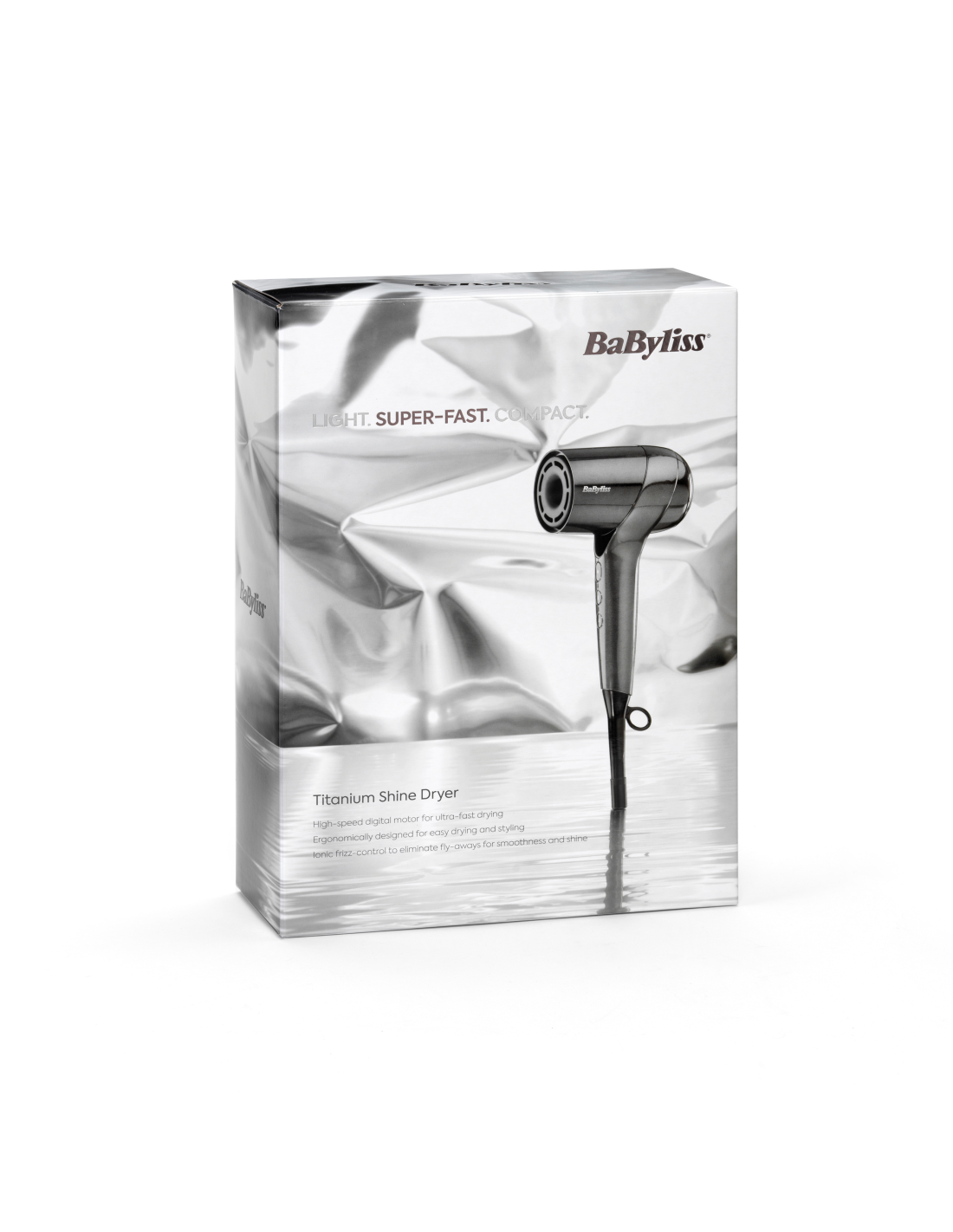 Titanium Shine professionaalse tasemega föön on kerge ja kompaktne, ent varustatud võimsa digitaalmootoriga, mis tagab ülikiire kuivamise. Suunatud õhuvool võimaldab täpset ja kiiret töötlemist, vähendades viimistluseks kuluvat aega ilma tulemusi ohverdamata. Tänu ergonoomilisele ja tasakaalustatud kujule on seda mugav käes hoida, muutes juuste viimistlemise lihtsaks ja sujuvaks. Kuulub BaByliss Titanium Shine kollektsiooni.