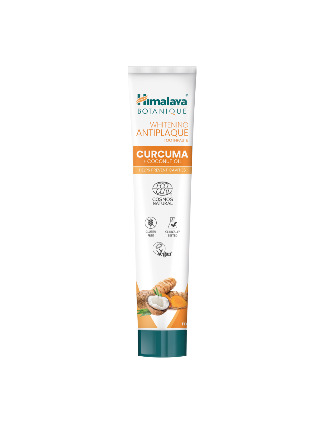 Himalaya Botanique valgendav ja hambakatu vastase toimega hambapasta kurkumi ja kookosõliga.