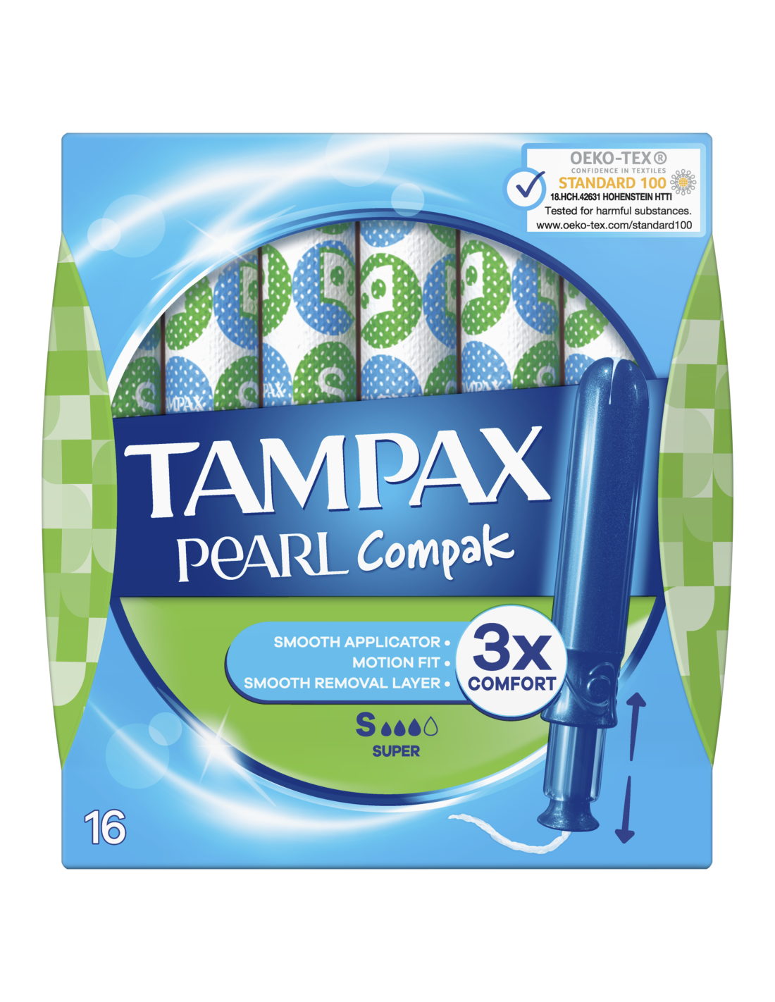Tampax Pearl Compaki tampoonid on Tampaxi parimad tampoonid, mis pakuvad mugavust, kaitset ja diskreetsust. Need ei sisalda lõhnaaineid. Tampax Pearl Compaki tampoonidel on kompaktne ja diskreetne, mugavat sisestamist võimaldav sileda pinna ja ümara otsaga plastaplikaator. Aplikaatori reljeefse mustriga libisemiskindel pind püsib kindlalt sõrmede vahel ning seda on kerge hoida ja paika asetada. Tampax Pearl Compaki valmistamisel on kasutatud MotionFit-tehnoloogiat, mis laseb tampoonil sinu ainulaadse kehakujuga sobitumiseks õrnalt paisuda. Lisakaitset pakub punutud LeakGuard lekkekaitse, mis aitab lekked peatada juba tekkekohas. Tampax Pearl Compakil on julged värvilised ümbrised, mis taluvad käekotis hoidmist ning on lihtsalt ja vaikselt avatavad, tagades seega täieliku diskreetsuse. Tampax Pearl Compak Super on Tampaxi parim tampoon rohke vooluse imamiseks. Tampax Pearl Compaki tampoone on günekoloogiliselt testitud. Oeko-Tex on eraldi testinud ka kahjulike ainete sisaldust nendes. Lisateavet Tampaxi toodete kohta leiad Tampaxi veebisaidilt.