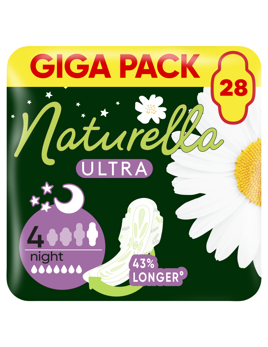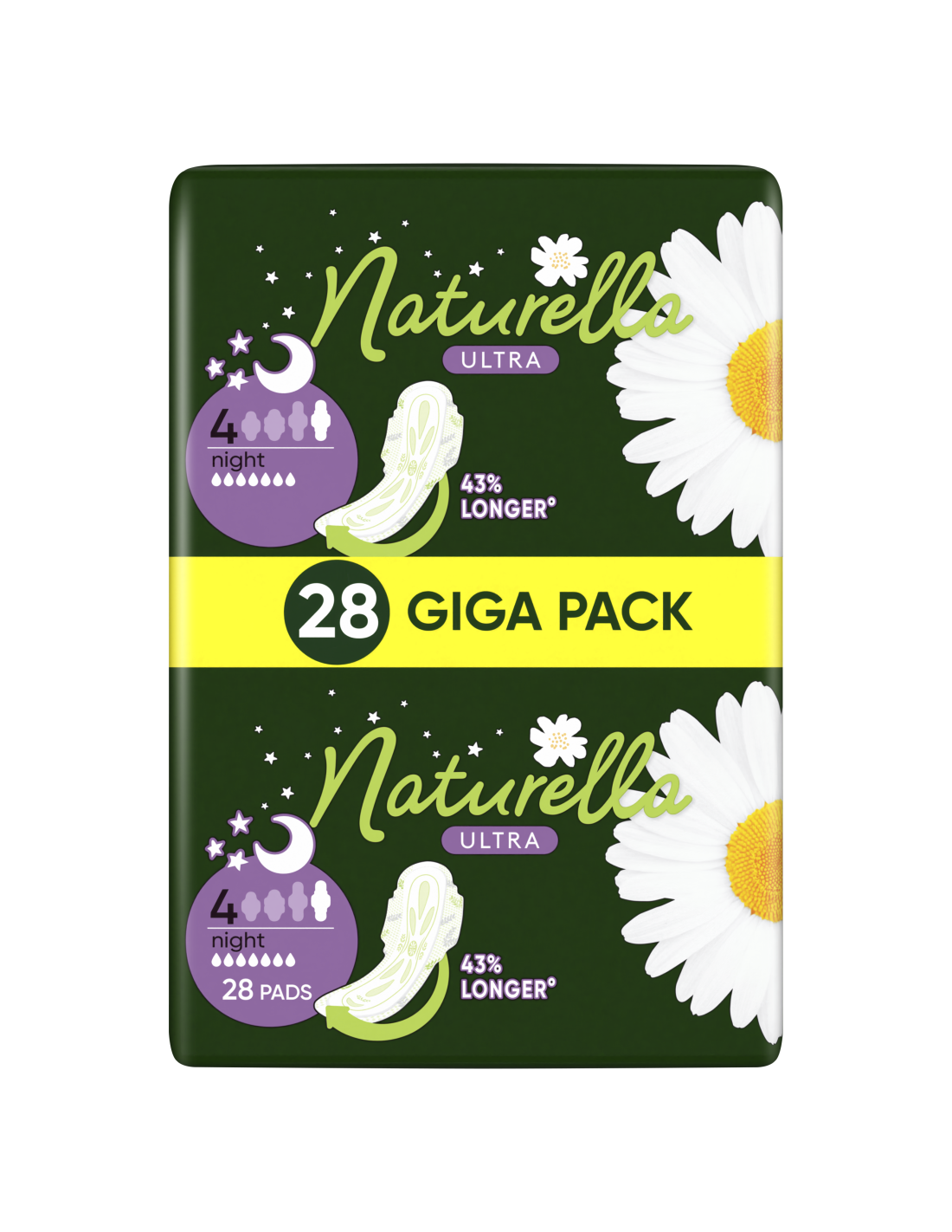 Naturella Ultra Night Size 4 tiibadega hügieenisidemete imav sisu on valmistatud kahekordse toimega kiududest, mis on imavad ja säilitavad hügieenisideme kuju, et tunneksid end ükskõik milliste liigutuste korral mugavalt. Naturella Ultra hügieenisidemed on mugavuse ja diskreetsuse tagamiseks õhukesed ning tagavad pehmuse sinu intiimpiirkonna naha eest hoolitsemisel. See on ainus naiste hügieenitoode, mis sisaldab kuiva ihupiima, millel on tõestatult nahaärritust ennetav toime. Täiendavaks hoolduseks ja kaitseks öösel. Suurem paremaks kaitsmiseks.