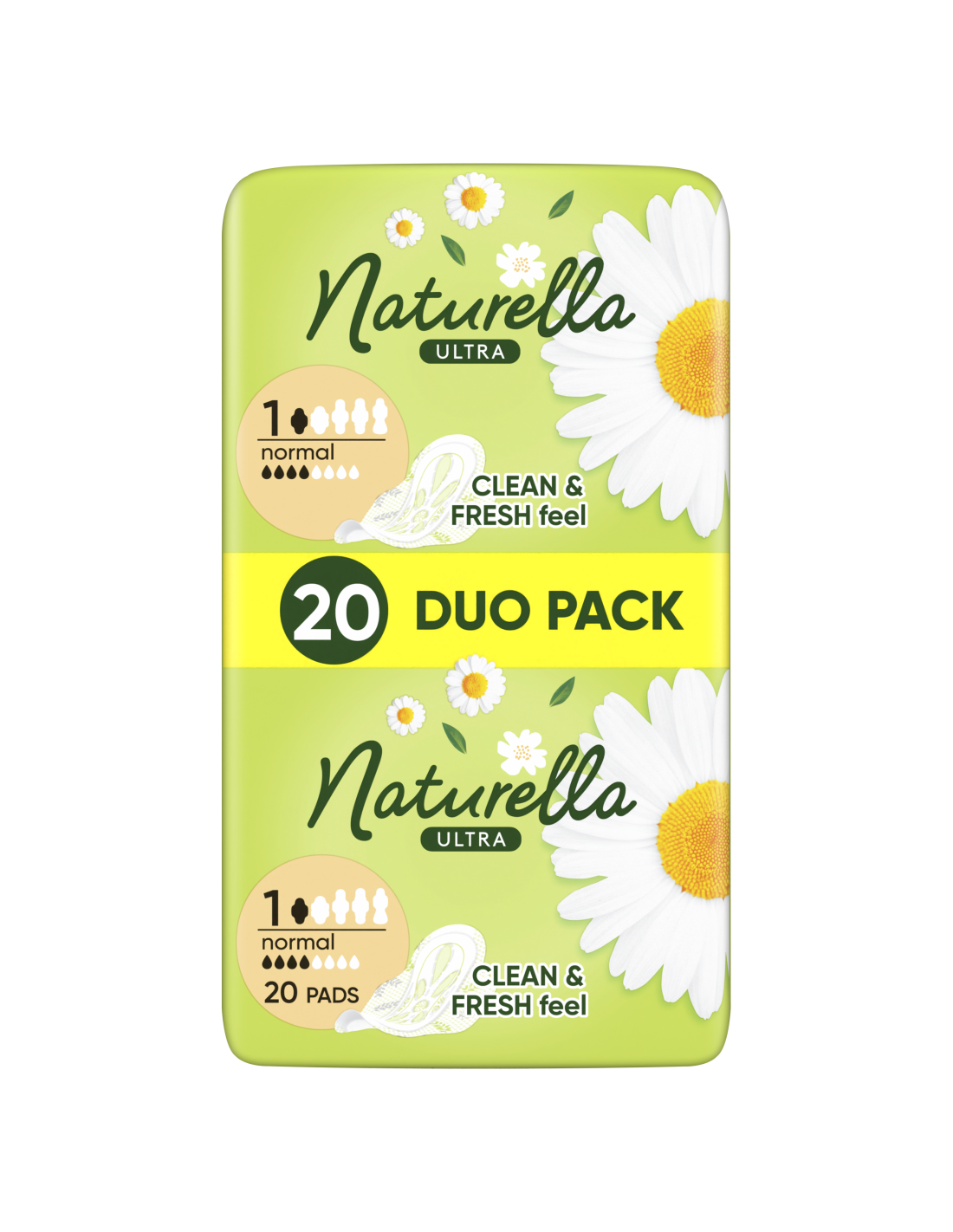 Naturella Ultra Normal Size 1 tiibadega hügieenisidemete imav sisu on valmistatud kahekordse toimega kiududest, mis on imavad ja säilitavad hügieenisideme kuju, et tunneksid end ükskõik milliste liigutuste korral mugavalt.  Naturella Ultra hügieenisidemed on mugavuse ja diskreetsuse tagamiseks õhukesed ning tagavad pehmuse sinu intiimpiirkonna naha eest hoolitsemisel.  See on ainus naiste hügieenitoode, mis sisaldab kuiva ihupiima, millel on tõestatult nahaärritust ennetav toime.  Saadaval värskust lisava kummeli, rohelise tee ja saialille lõhnaga. Täiendavaks hoolduseks ja kaitseks päeva jooksul proovi Naturella Ultra Normal Plus suurust 2 ja Naturella Ultra Maxi suurust 3 ning ööseks proovi Naturella Ultra Night suurust 4, millel on pikem tagaosa. Suurem paremaks kaitsmiseks.