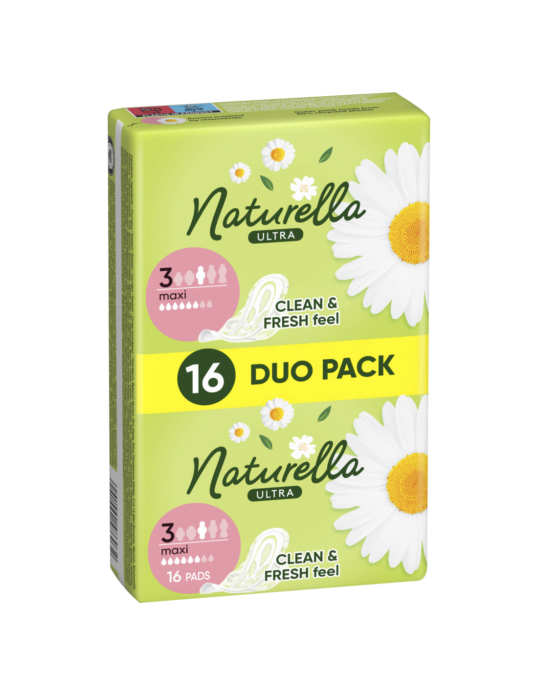 Naturella Ultra Maxi Size 3 tiibadega hügieenisidemete imav sisu on valmistatud kahekordse toimega kiududest, mis on imavad ja säilitavad hügieenisideme kuju, et tunneksid end ükskõik milliste liigutuste korral mugavalt. Naturella Ultra hügieenisidemed on mugavuse ja diskreetsuse tagamiseks õhukesed ning tagavad pehmuse sinu intiimpiirkonna naha eest hoolitsemisel. See on ainus naiste hügieenitoode, mis sisaldab kuiva ihupiima, millel on tõestatult nahaärritust ennetav toime. Naturella Ultra Maxi hügieenisidemed on pikemad kui tavalised hügieenisidemed. Kui soovid ööseks paremat hooldust ja kaitset, proovi pikema tagaosaga sidemeid Naturella Ultra Night suurus 4. Suurem paremaks kaitsmiseks.
