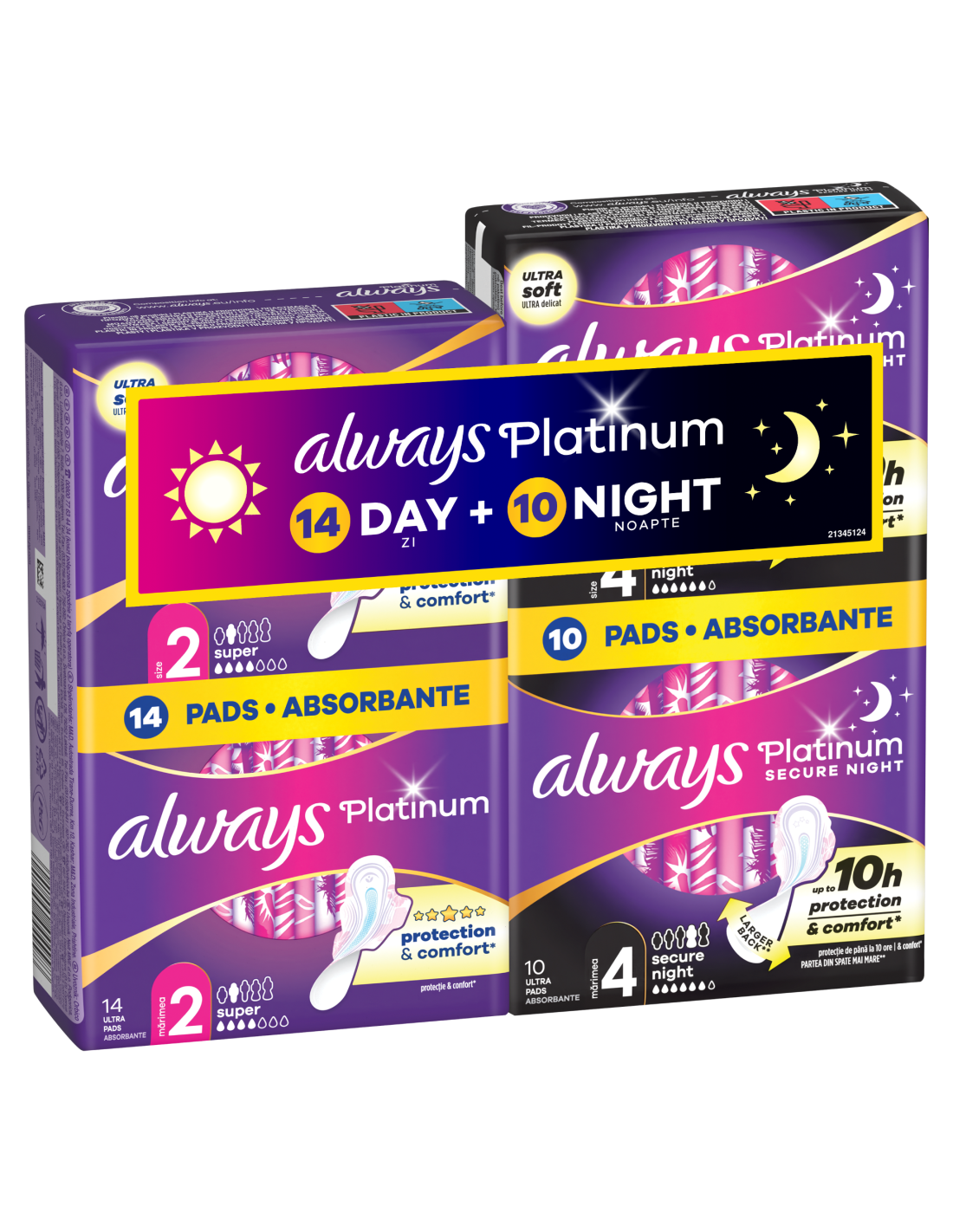 Always Platinum Hügieenisidemed Day (Size 2, 14 tk) ja Night (Size 4, 10 tk)