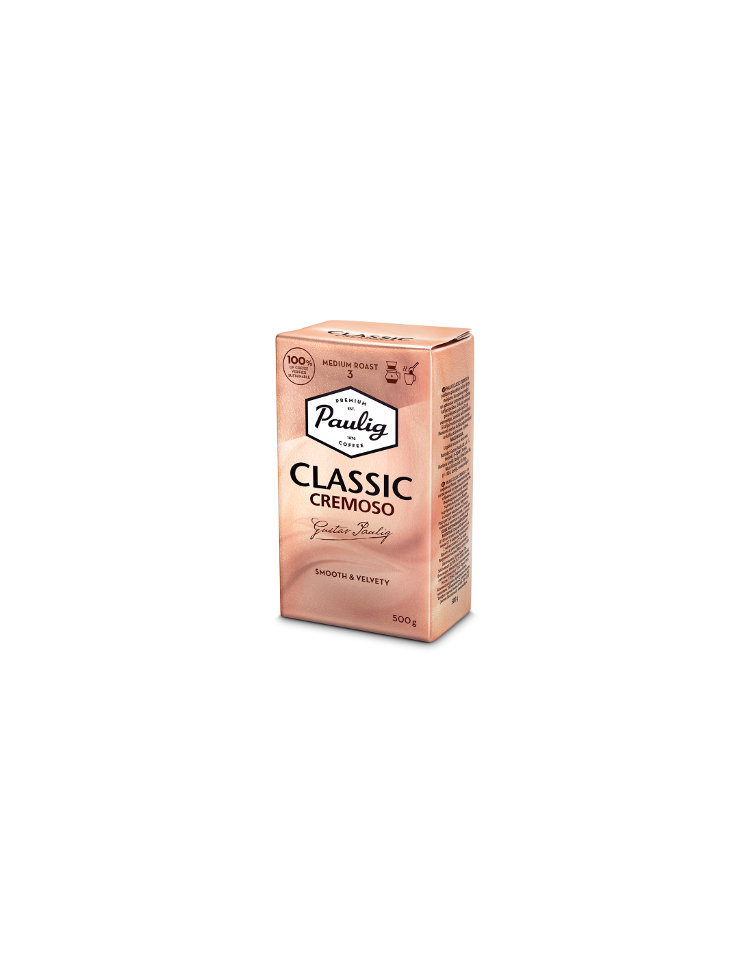 Paulig Classic Cremoso on maitsev kohvisegu, mis on röstitud pehme ja meeliköitva maitseprofiiliga Ladina-Ameerika ubadest. Hästi sobitatud tugevam röst rõhutab veelgi kohvisegu sametisi mesimagusaid toone.