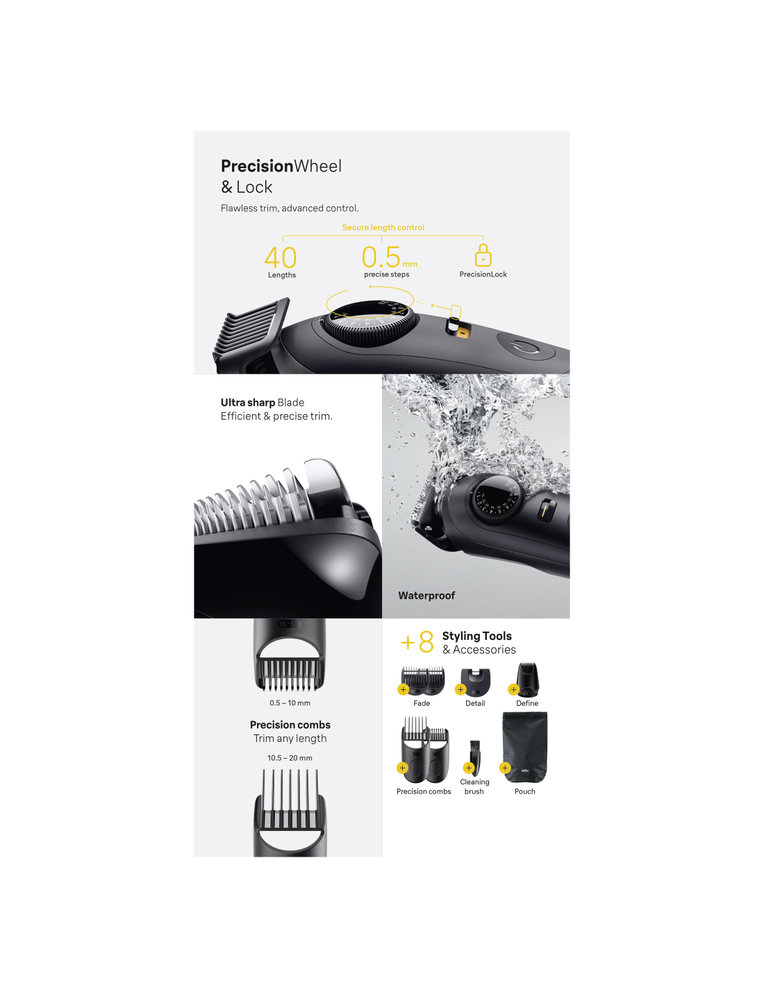 - PrecisionWheel ja lukk Laitmatu stiil, pikkusest olenemata. Täiustatud juhtimine vigade vältimiseks