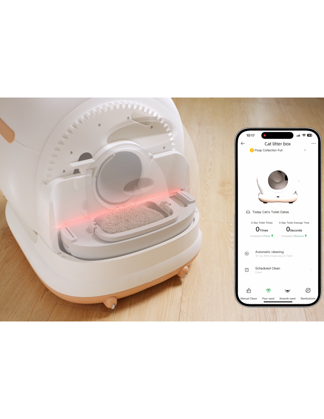 Nutirakenduse juhtimine: Halda liivakasti mugavalt telefoniäpiga. Reaalajas teavitused täis jäätmeanuma kohta ja kassi harjumuste jälgimine annavad sulle täieliku kontrolli.