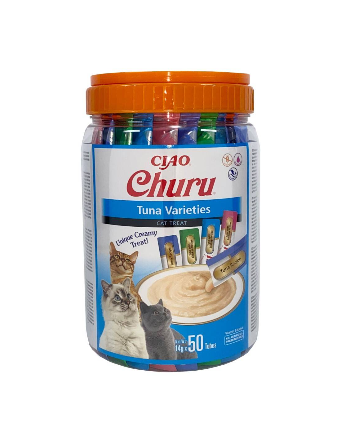 Churu® muudab suupistete aja kasside jaoks lõbusaks. Need maitsvad ja tervislikud maiused on kergesti avatavates pakendites, mida teie kass armastab lakkuda! Need uskumatult maitsvad sametised kastmed, mis on mõeldud käsitsi söötmiseks, on valmistatud kõrgeima kvaliteediga inimkõlbulikest koostisosadest. Churu on madala kalorsusega, teravilja- ja säilitusainetevaba ning selle valmistamisel kasutatakse hoolikalt jälgitud farmides looduslikult kasvatatud vabalt peetavate kanade ja jätkusuutlikult püütud, delfiinidele ohutu süvamere tuunikala.