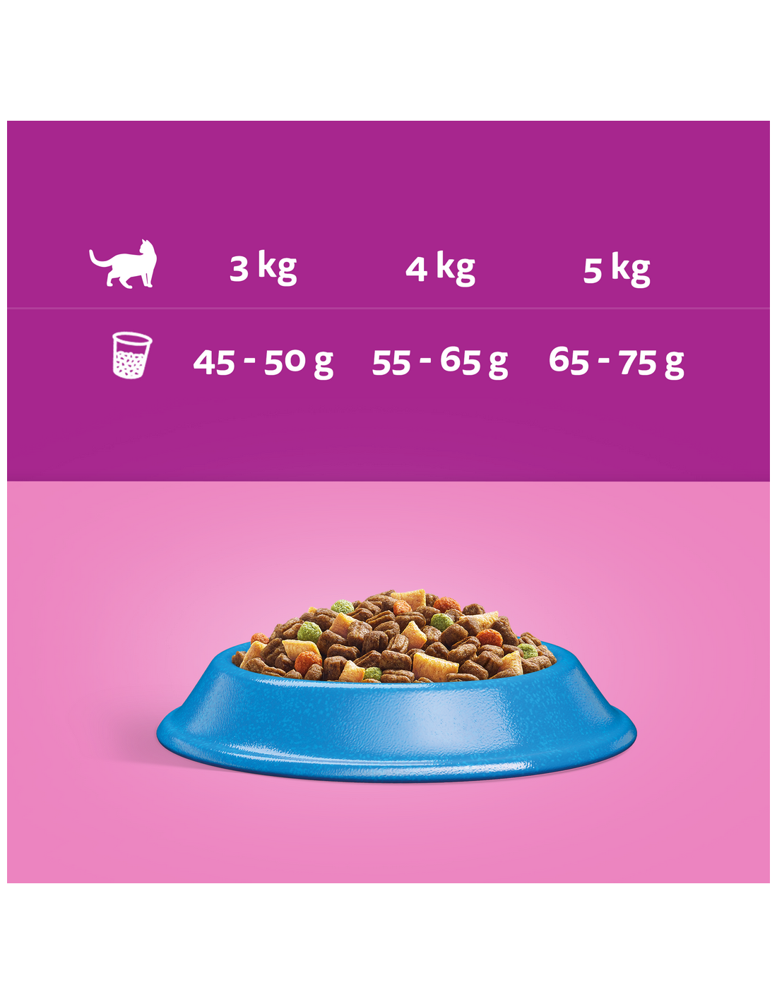 Soovitatav päevane toidukogus. Soovitame toita oma kassile Whiskasi märg- ja kuivtoitu.