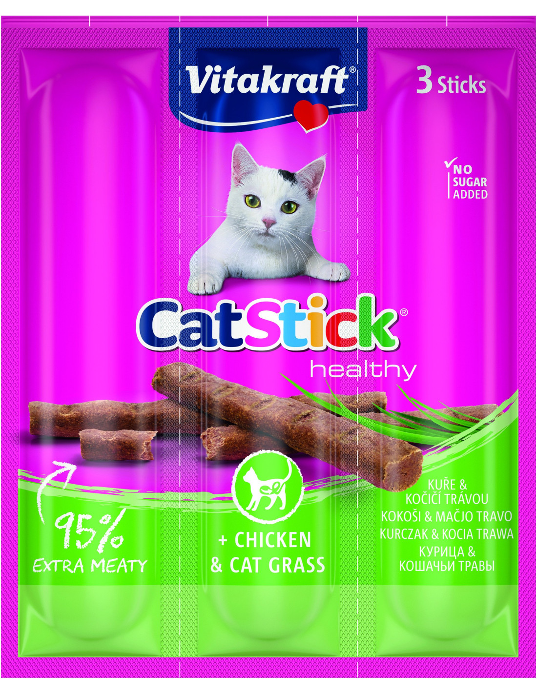 Liha ja loomsed kõrvalsaadused (95%, millest 6% kanaliha, 75% lihaseliha), mineraalid, 1% inuliin, 0,1% kassirohi. Lisandid: Sisaldab antioksüdante ja säilitusaineid.