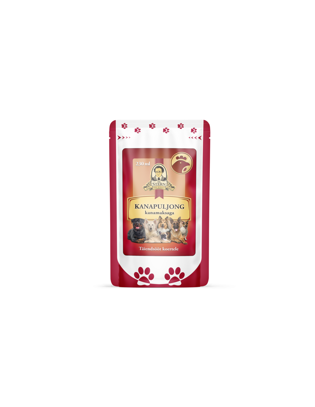 Dr. Stern kanapuljong kanamaksaga on looduslik kollageeni allikas, mis toetab liigeseid ja seedimist, hoiab kaalu kontrolli all. Samas tõstab see vedeliku taset organismis. Toode on laktoosi- ja gluteenivaba.