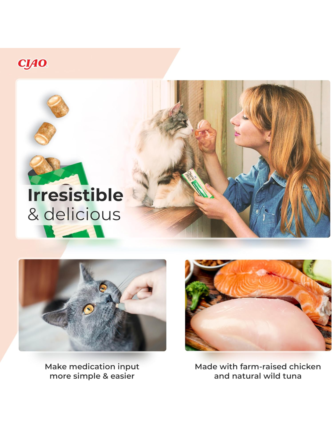 Churud on madala kalorsusega, teravilja- ja säilitusainetevabad ning valmistatud vabalt peetavatest kanadest, keda on looduslikult kasvatatud rangelt kontrollitud farmides, ja säästvalt püütud süvamere tuunikalast, mis on sertifitseeritud ja delfiinidele ohutu.