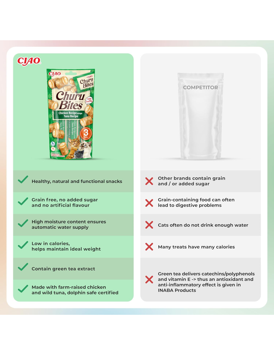 - Churu Bites'il on vähem kaloreid kui kuivsnäkkidel