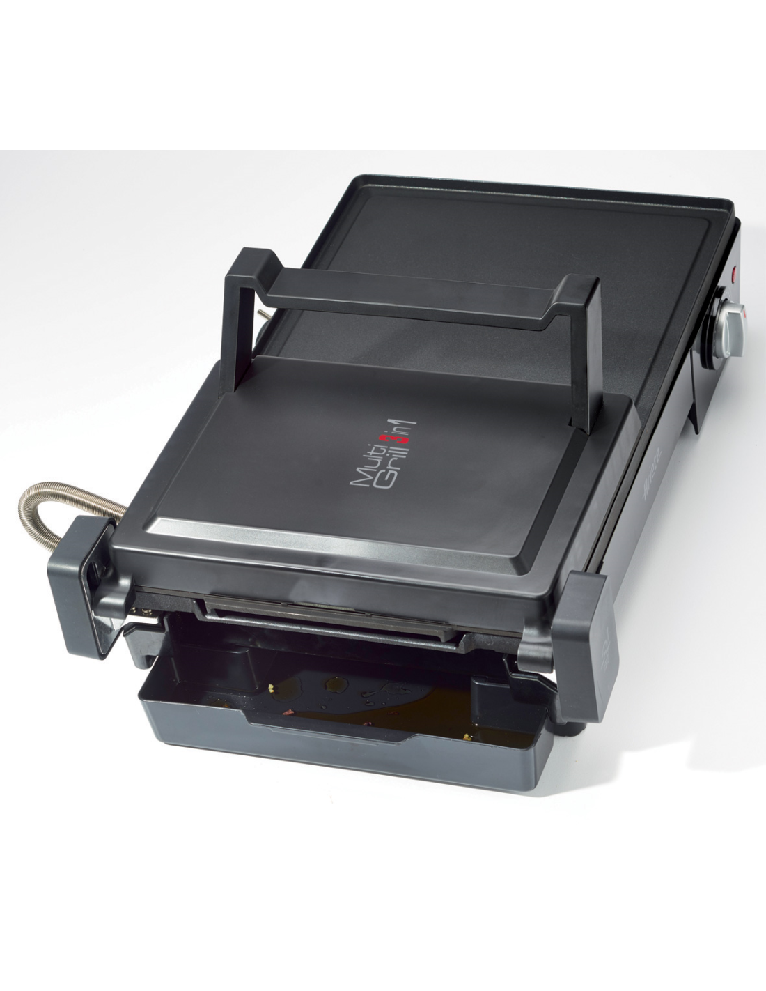Multi Grill 3 ühes muudab sinu kodused grillid tõeliseks edulooks, sest saad rahuldada kõigi külaliste maitse-eelistusi ja samal ajal grillida mitmesuguseid roogasid, nagu hamburgerid, röstsaiad, liha, köögiviljad ja munad. Kolme erineva küpsetuspinnaga ühes elektrigrillis omandavad sinu grillroad täiesti uue maitse. Elektrigrill on tõesti mitmekülgne ja multifunktsionaalne, kergesti teisendatav lauagrillist kontaktkattega grilliks või siledaks ja triibuliseks grilliks. Sel viisil saad samal ajal röstida või soojendada röstsaiu, võileibu ja burgereid ning grillida liha, köögivilju või kala. Kaan pöörleb 180°, suurendades ühe lihtsa liigutusega grillpinda! Olgu liha hästi küpsenud või pooltoores, tänu reguleeritavale termostaadile saad alati saavutada soovitud küpsusastme ning valmimisindikaator näitab, millal on ideaalne aeg grillimiseks. Praktiline eemaldatav rasvakogumisalus on pestav ja mittenakkuvad plaadid on lihtsasti puhastatavad vaid ühe käsnaga, tagades alati valmisoleku järgmise grillisessiooni jaoks.