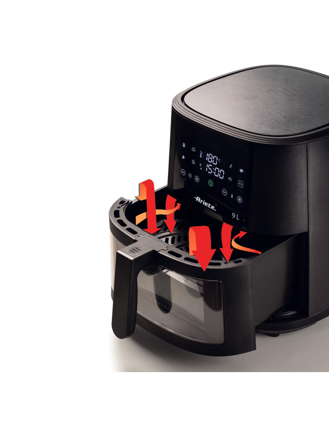 Suurelt puutetundlikult digipaneelilt saate reguleerida valmistusaegu, programme, temperatuure ja taimereid. Seadmes on alus, millega saate valmistada krõbedamaid ja maitsvamaid toite. Seadmel Airy Fryer 9L on läbipaistev korv, kus saate toidu valmimist jälgida nagu tavalises ahjus: kontroll on teie kätes!