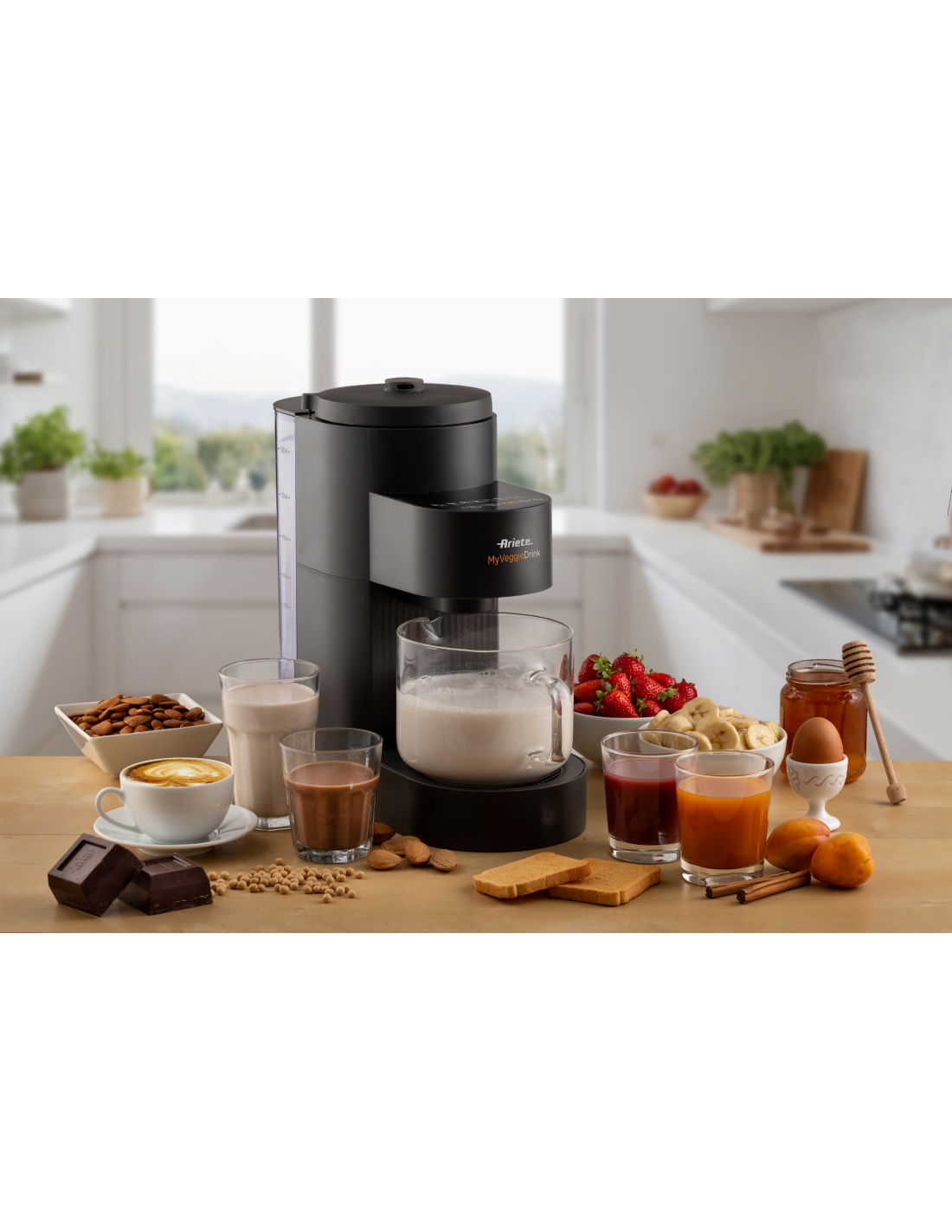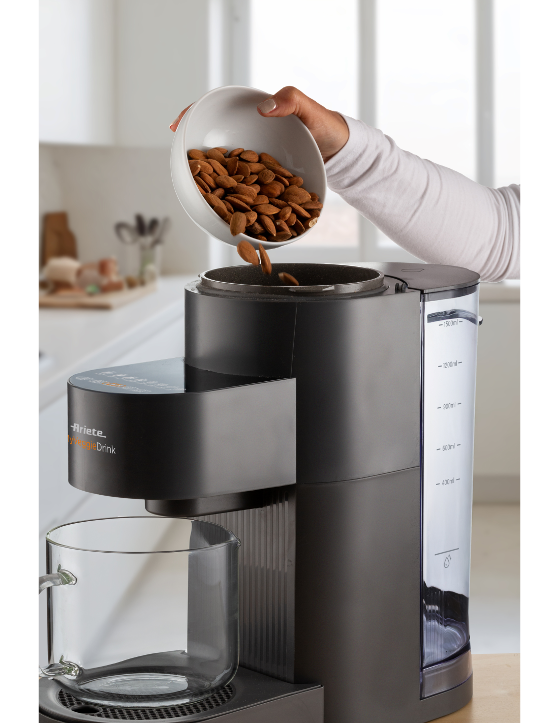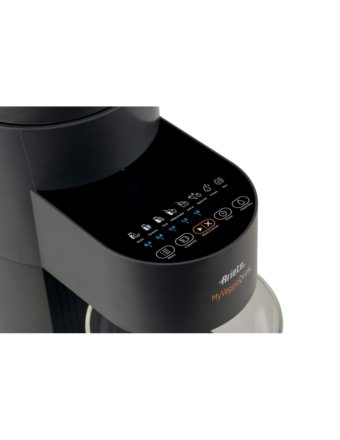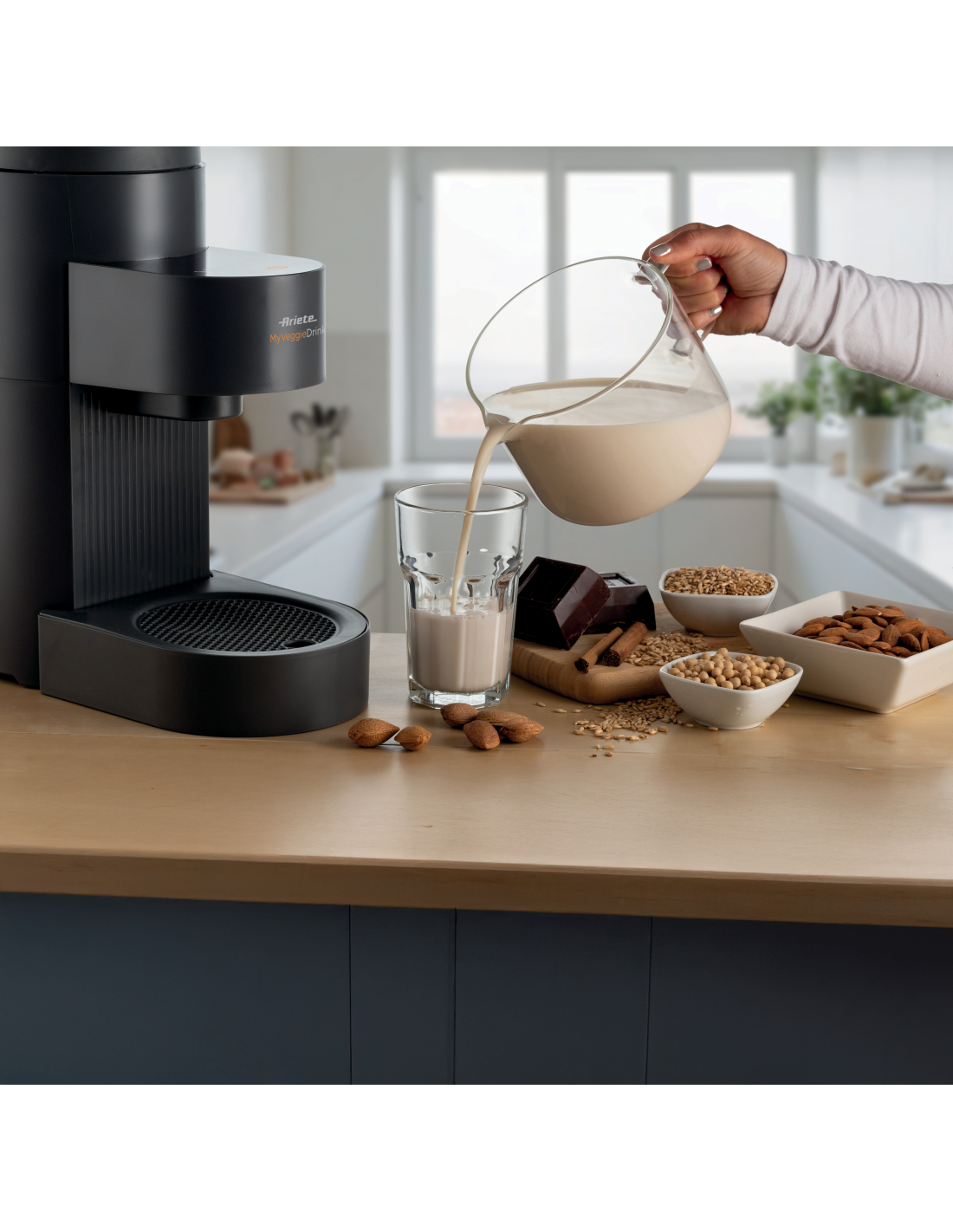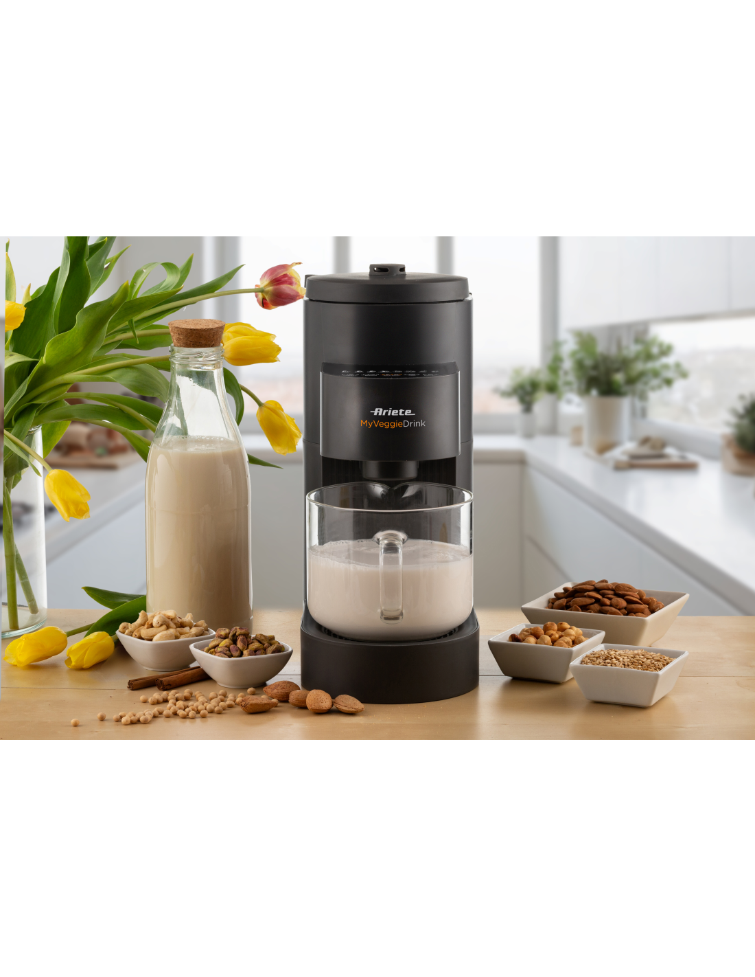 Vali oma lemmik koostisosad (kaerahelbed, riis, soja, sarapuupähklid, mandlid), pane need segamisnõusse, mis on varustatud nelja võimsa roostevabast terasest teraga ja mittenakkuva keraamilise kattega. Puutetundlikul ekraanil vali 6 programmi hulgast sobiv ning My Veggie Drink valmistab joogi kiiresti: vaid 15 minutiga saad nautida oma taimset jooki!