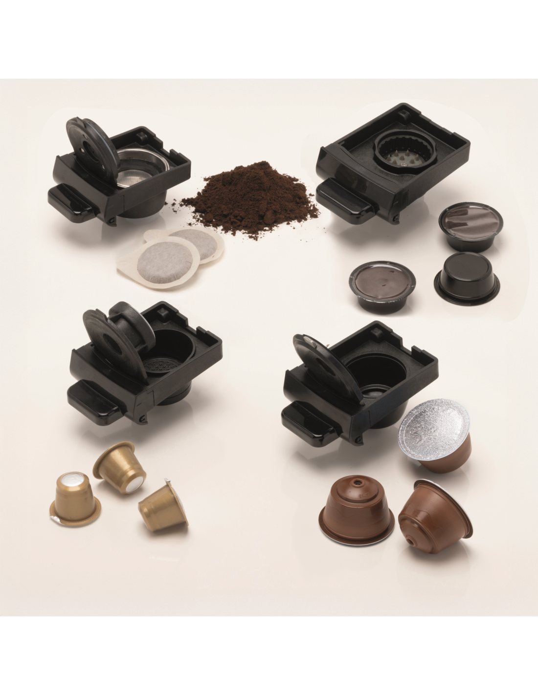 Nespresso*, Dolcegusto*, Lavazza A Modo Mio* kapslid, ESE-padjad või jahvatatud kohv – otsus on sinu. Vaheta lihtsalt sahtlit ja naudi piiramatut valikuvabadust.