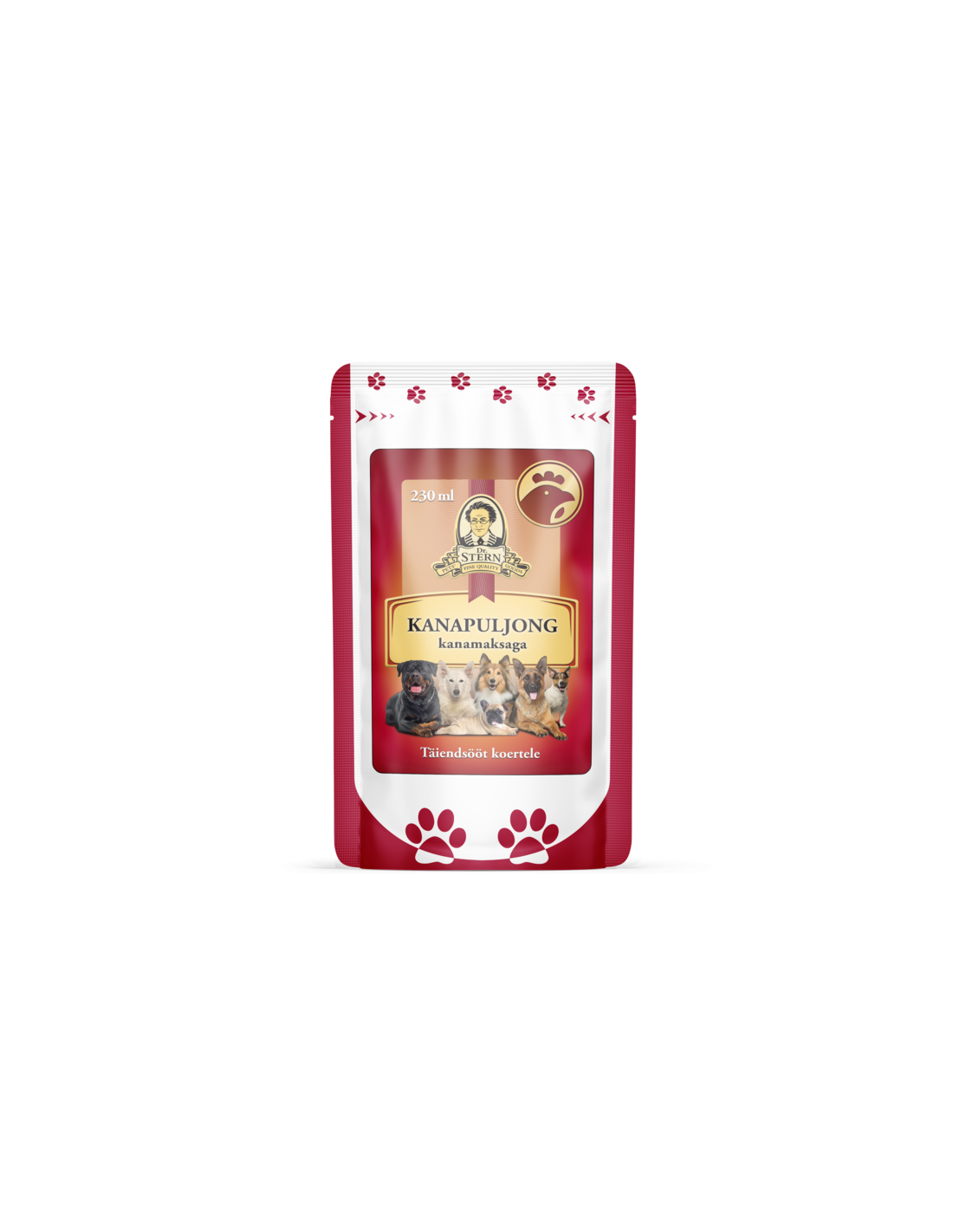 Dr. Stern kanapuljong kanamaksaga on looduslik kollageeni allikas, mis toetab liigeseid ja seedimist, hoiab kaalu kontrolli all. Samas tõstab see vedeliku taset organismis. Toode on laktoosi- ja gluteenivaba.