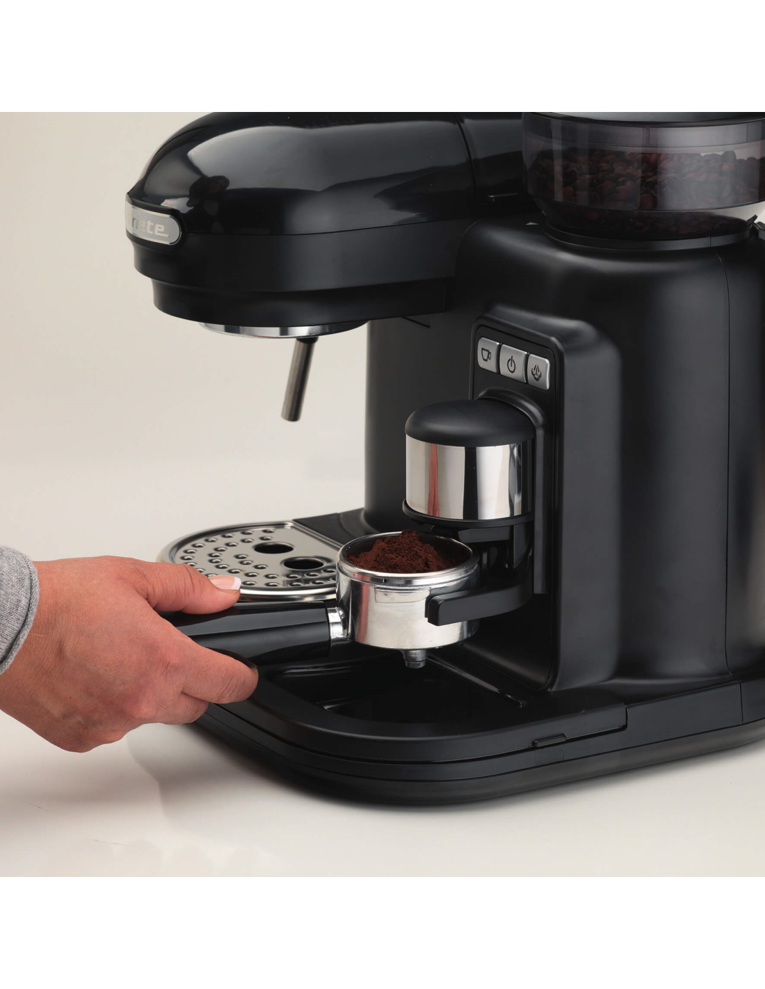 Integreeritud kohviveski muudab selle masina väärtuslikuks ja funktsionaalseks seadmeks, mis on mõeldud tõelistele harrastajatele, kes hindavad värskelt jahvatatud kohvi eksimatut aroomi.