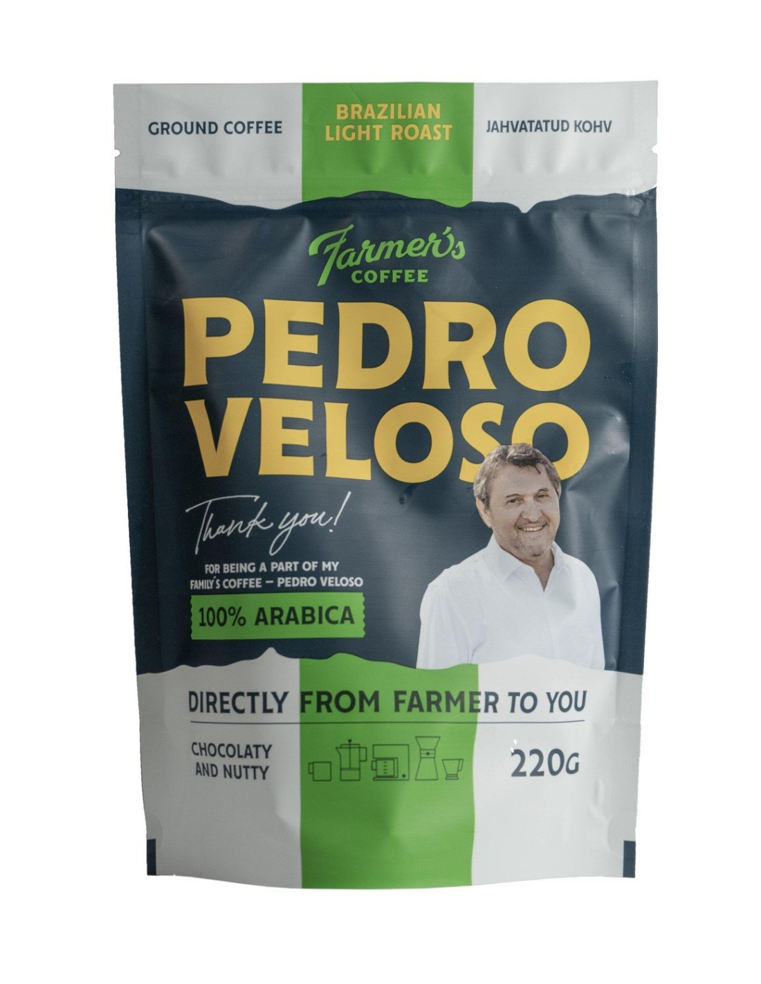 Farmer´s Coffee Brasiilia kohvioad on kasvatatud ja korjatud otse Brasiilia südamest, Pedro Veloso istandusest, kus iga samm on läbimõeldud ja suunatud parima kvaliteedi tagamisele. Istanduse omanik, Pedro Veloso on pühendanud aastaid erikohvi kasvatamisele, tuues esile Brasiilia kohvi unikaalse maitseeripära.