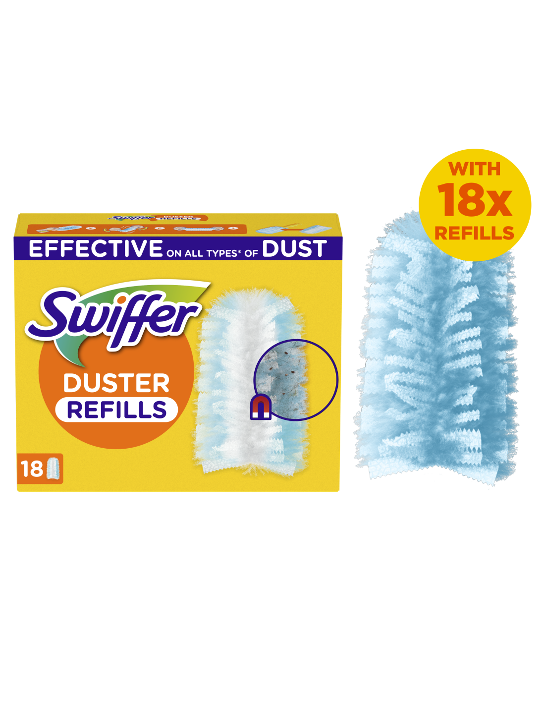 Swifferi tolmuharjad puhastavad tõhusalt igat tüüpi tolmu tänu tuhandetele kohevatele kiududele, mis püüavad tolmu, mustuse ja karvad tõhusalt kinni igalt pinnalt isegi raskesti ligipääsetavatest kohtadest, ilma et need mööda maja laiali lendleks.