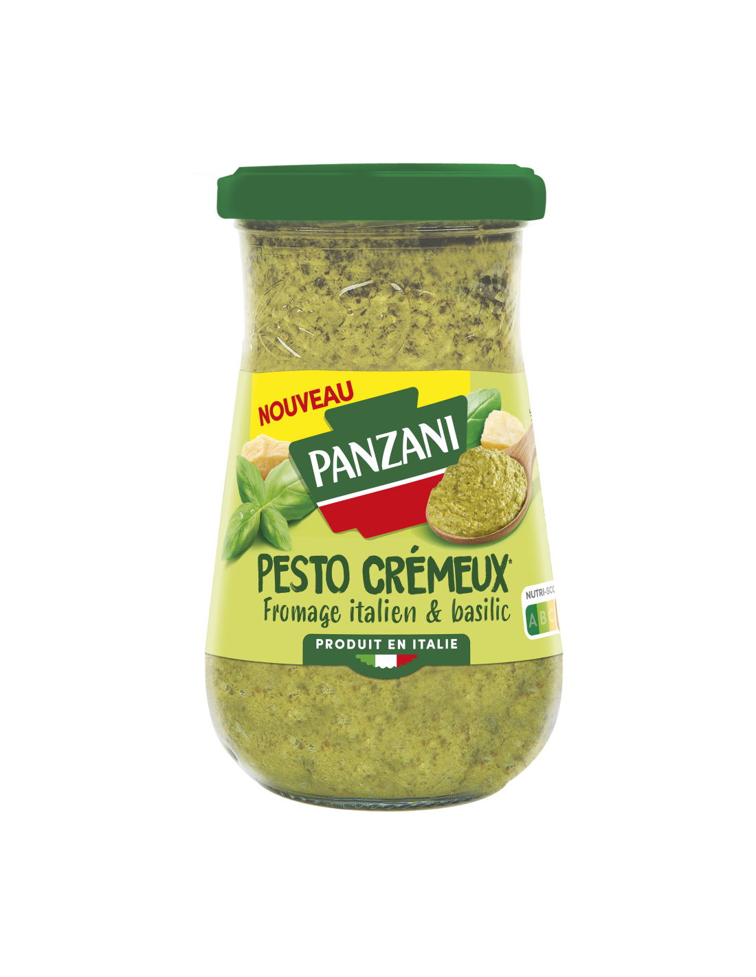 Päevalilleõli 37%, basiilik 33%, juust GRANA PADANO KPN (piim, muna) 5%, purustatud india pähklid (pähklid), piimavalk, maisikiud, vadakupulber, sool, vesi, suhkur, looduslik lõhna- ja maitseaine (piim), happesuse regulaator: piimhape, küüslaugu viljaliha, tärklis, looduslik maitseaine basiilik, antioksüdant: askorbiinhape.