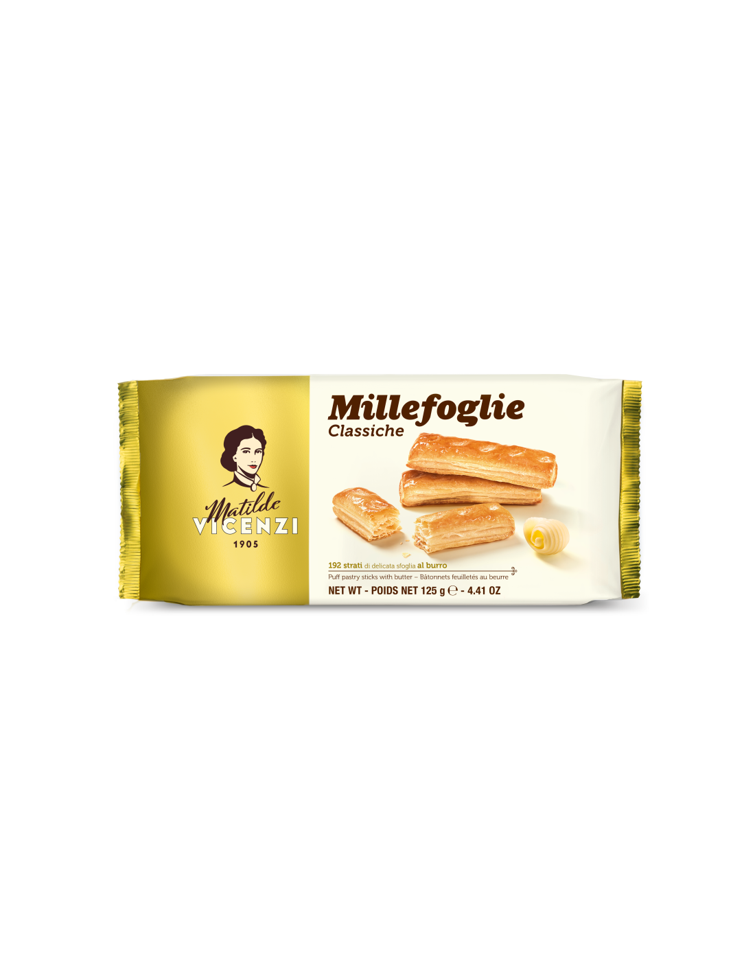 Ainulaadne ja ajatu Matilde Vicenzi klassikaline Millefoglie lehttainapulgad, mis on tõeline Itaalia kondiitritraditsiooni sümbol – täis ehtsa või maitset ja elegantsi igas kihis.