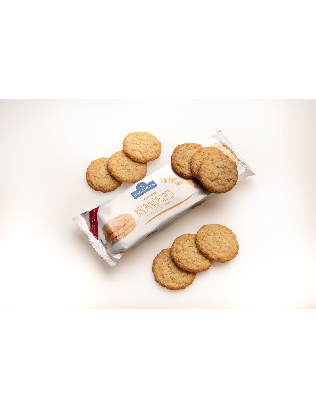 suhkur, KAERahelbed 25%, palmirasv, NISUjahu, KAERajahu, kergitusained: ammooniumkarbonaadid, naatriumkarbonaadid; emulgaator: letsitiin (SOJA); lõhna- ja maitseaine, sool. Sisaldab gluteeni ja soja. Võib sisaldada pähkleid, maapähkleid, seesamiseemneid, muna ja piima.