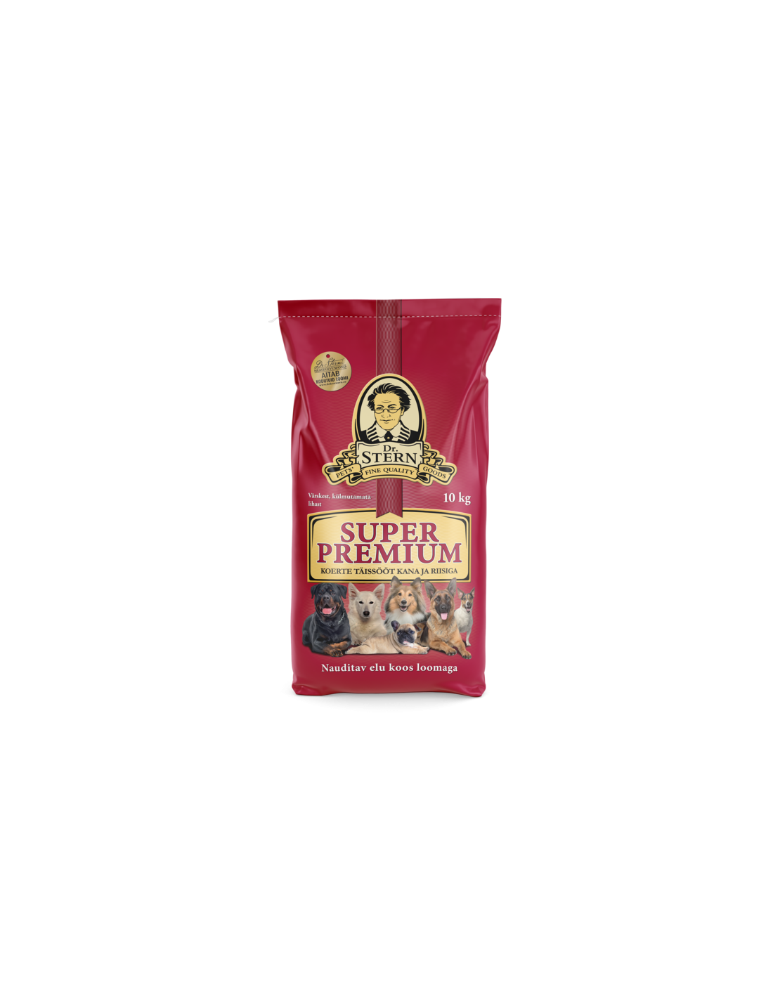 Dr. Stern Super Premium on kõige toitvam koeratoit Eesti jaekaubandusvõrgus. Paraja suurusega graanulid sobivad nii kutsikatele kui ka väikest ja suurt tõugu koertele. Tänu suurele energiasisaldusele sobib Dr. Stern Super Premium koertele alates kutsikaeast kuni päris vana koerani välja. Jälgige soovituslikku toitumisnormi.