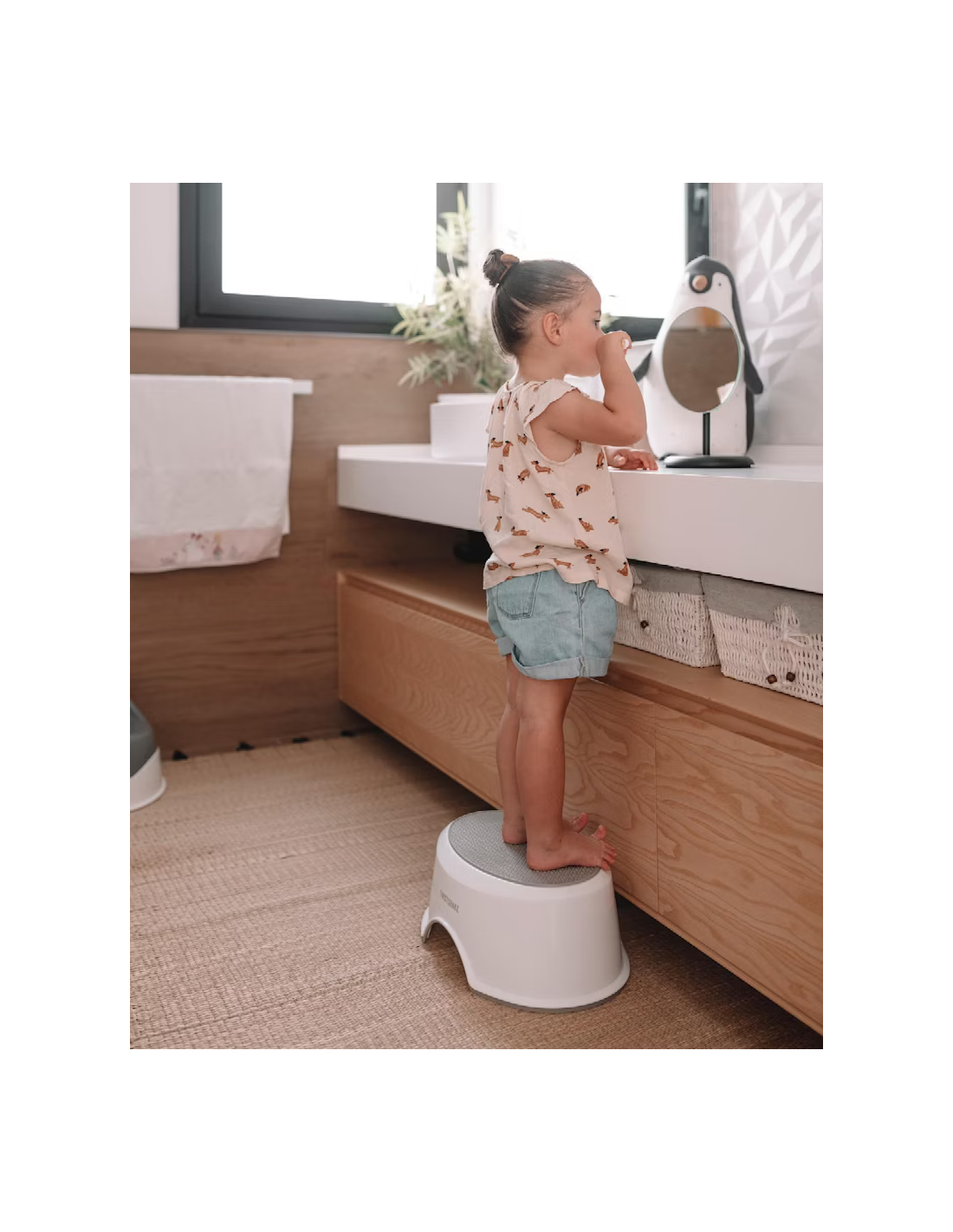 Tugev ja turvaline vannitoa jalapink, mis on disainitud libisemiskindlate pindadega – ideaalne abivahend, et aidata sinu pisikesel igapäevastes toimetustes uusi kõrgusi vallutada.