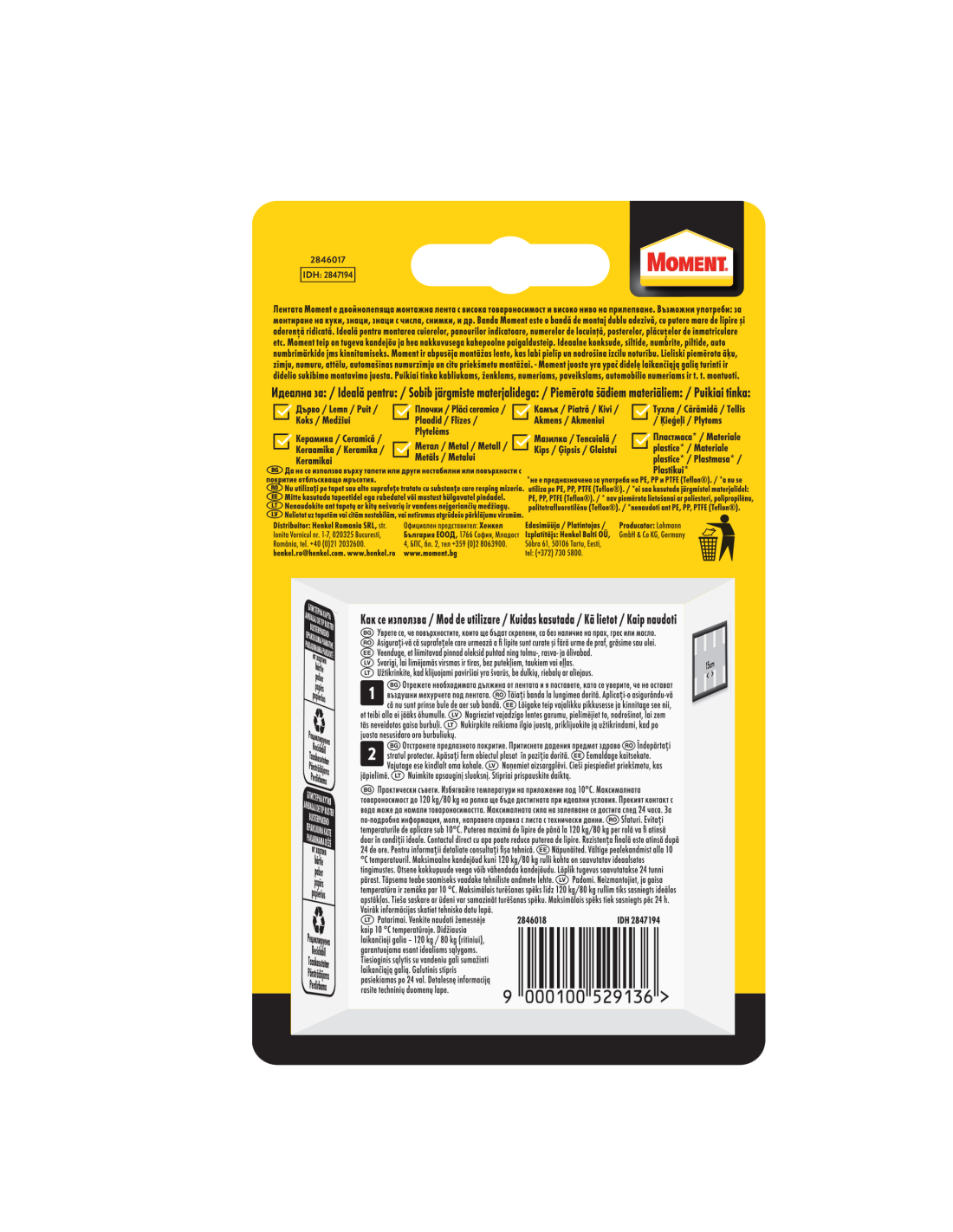▪ Moment Power Fix 120kg saab kasutada esemete kinnitamiseks paljudele erinevatele siledatele pindadele, nt puit, keraamilised plaadid, metall, tellis, kivi, krohv ja paljud plastikmaterjalid**.