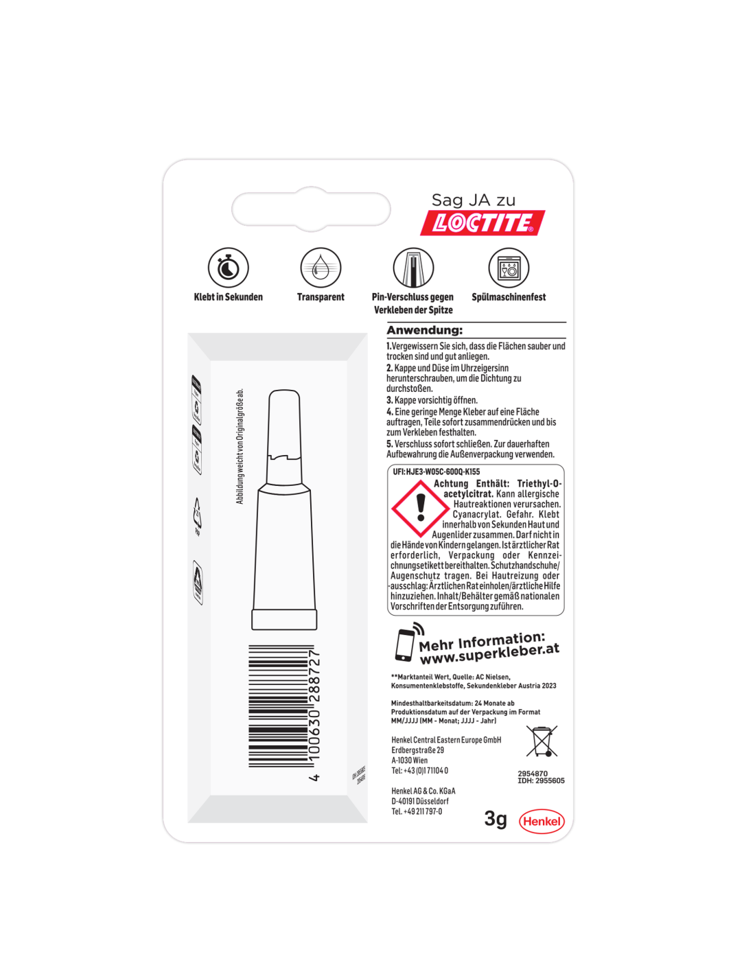 Moodustab kiire ja vastupidava liimiühenduse, mis on veekindel ja talub pesemist nõudepesumasinas.