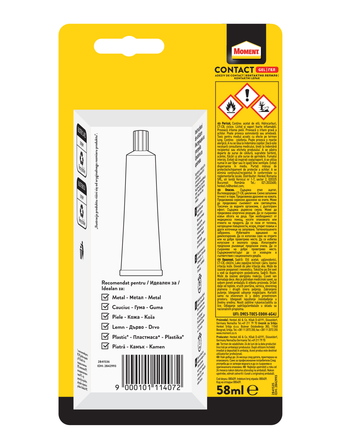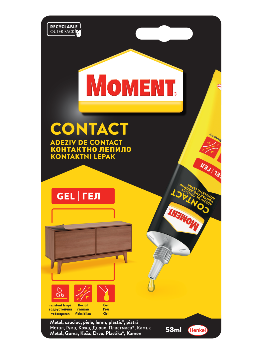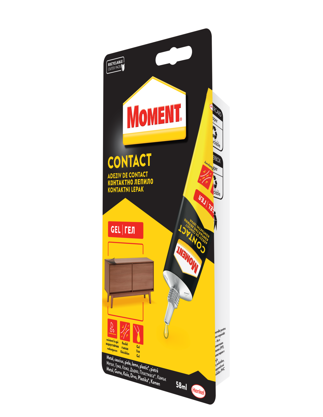 Moment Gel on geeljas kontaktliim, mis sobib paljude erinevate materjalide tugevaks liimimiseks.