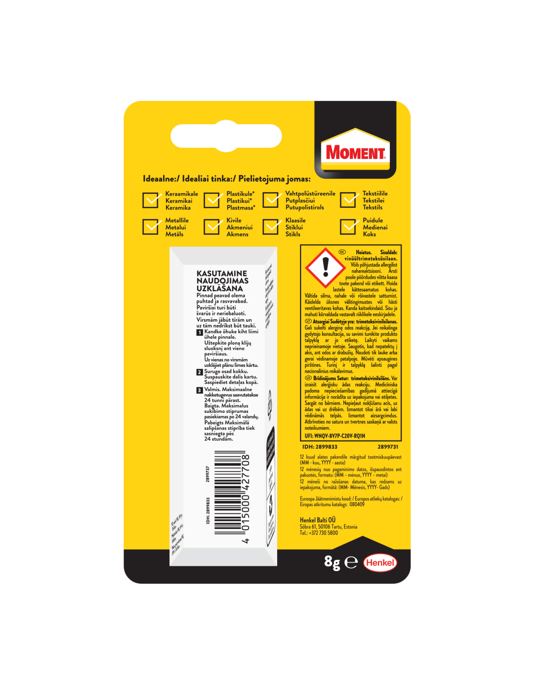 VÄRVIMINE, LIHVIMINE VÕI MUU VIIMISTLUS. Moment 100% Gel koostis võimaldab saada tugeva liimliite ja täidise. Vee-, rasva-, lahusti-, külma- ja kuumakindla koostisega liim ei kahane ega paisu. Liimliidet võib üle värvida, lihvida või muul viisil viimistleda.