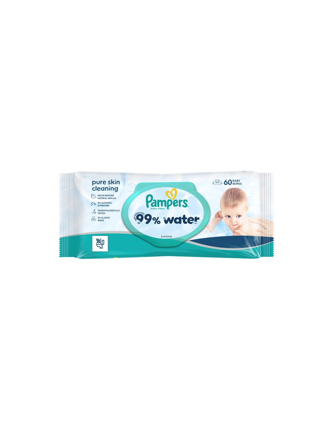 Pampers 99% vett – kerge ihupiim 99% veega. Pampersi beebi niisked salvrätid pakuvad õrna puhast nahapuhastust ja aitavad kaitsta sinu beebi õrna nahka tänu Pampersi spetsiaalsele koostisele, mis aitab taastada naha loomulikku pH-d ja kaitseb nahka punetuse eest. Need on valmistatud 0% alkoholi ja parfüümiga. Koostis on dermatoloogiliselt testitud. See on saanud Skin Health Alliance’i dermatoloogide heakskiidu.