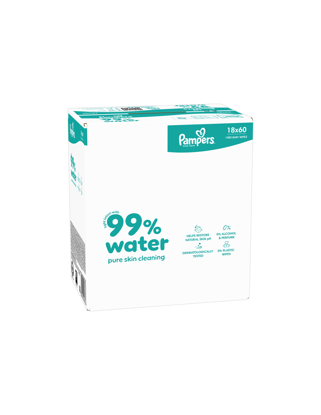 Pampers 99% vett – kerge ihupiim 99% veega. Pampersi beebi niisked salvrätid pakuvad õrna puhast nahapuhastust ja aitavad kaitsta sinu beebi õrna nahka tänu Pampersi spetsiaalsele koostisele, mis aitab taastada naha loomulikku pH-d ja kaitseb nahka punetuse eest. Need on valmistatud 0% alkoholi ja parfüümiga. Koostis on dermatoloogiliselt testitud. See on saanud Skin Health Alliance’i dermatoloogide heakskiidu.