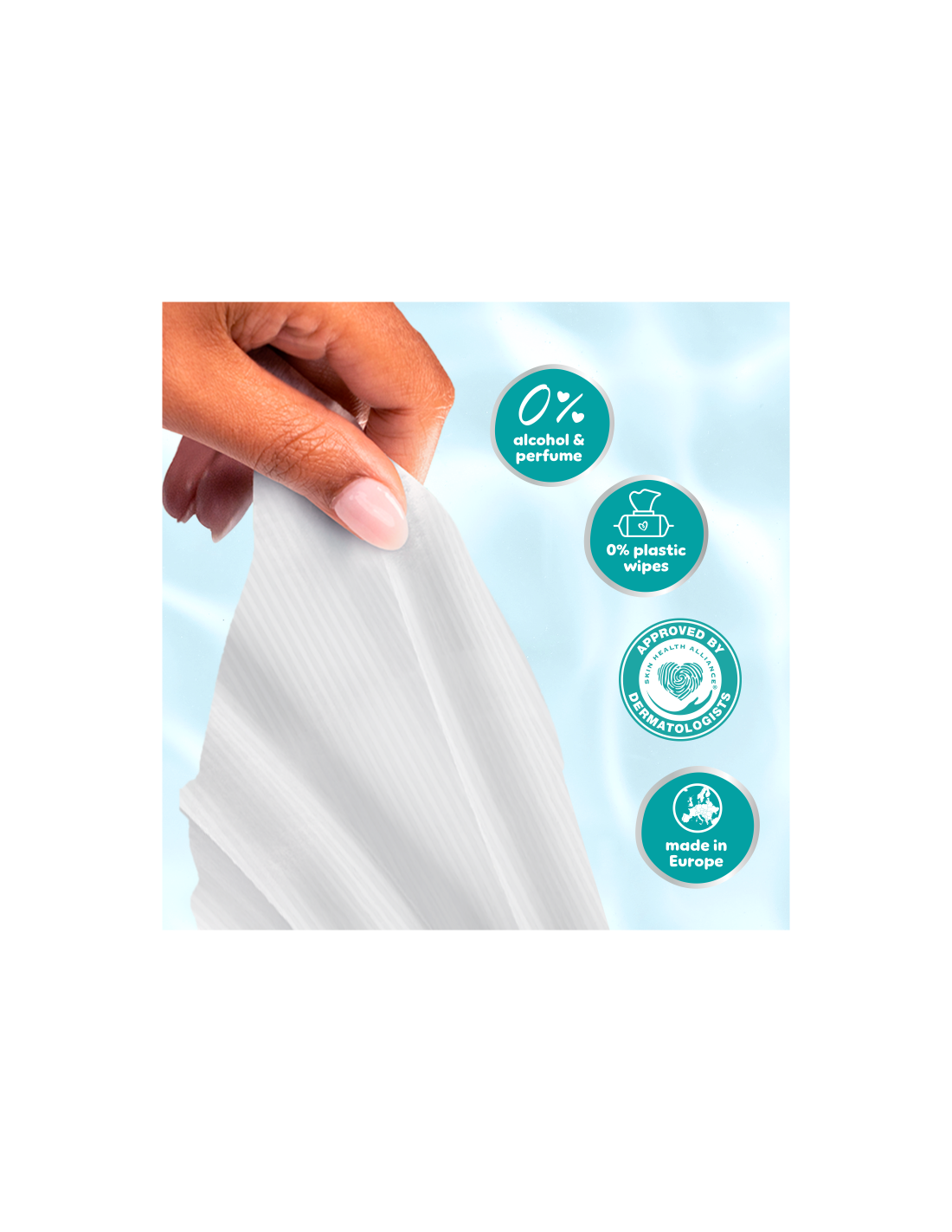 Pampers 99% vett – kerge ihupiim 99% veega. Pampersi beebi niisked salvrätid pakuvad õrna puhast nahapuhastust ja aitavad kaitsta sinu beebi õrna nahka tänu Pampersi spetsiaalsele koostisele, mis aitab taastada naha loomulikku pH-d ja kaitseb nahka punetuse eest. Need on valmistatud 0% alkoholi ja parfüümiga. Koostis on dermatoloogiliselt testitud. See on saanud Skin Health Alliance’i dermatoloogide heakskiidu.