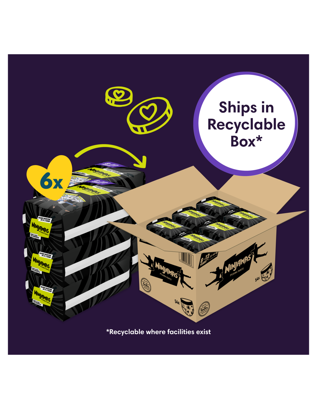 Tutvustame... Ninjamas pidžaamapüksid! Ärge kartke voodimärgamise õnnetusi ja ärgake enesekindlalt tänu kogu öö kestvale lekkekaitsele. Ninjamas pidžaamapükste kiire imendumise tehnoloogia imab niiskuse koheselt, tagades suurepärase kaitse, mida te pole varem näinud. Nende 360° FormFit Belt vööriba kohandub sinu lapse vöökohaga, et tagada diskreetselt ja mugavalt aluspesu meenutav sobivus – et lapsed saaksid iga päev ärgata suurepärase tundega. Sulle on kõige tähtsam sinu beebi ohutus. Meile samuti: Ninjamas pidžaamapüksid on dermatoloogiliselt testitud ja ei sisalda EL-i allergeenseid parfüüme (vastavalt EL-i kosmeetikatoodete määrusele nr 1223/2009) ning neid on testitud vastavalt OEKO-TEXi standardile 100. Kas soovid koostisosadest rohkem teada saada? Külasta veebisaiti pampers.com.