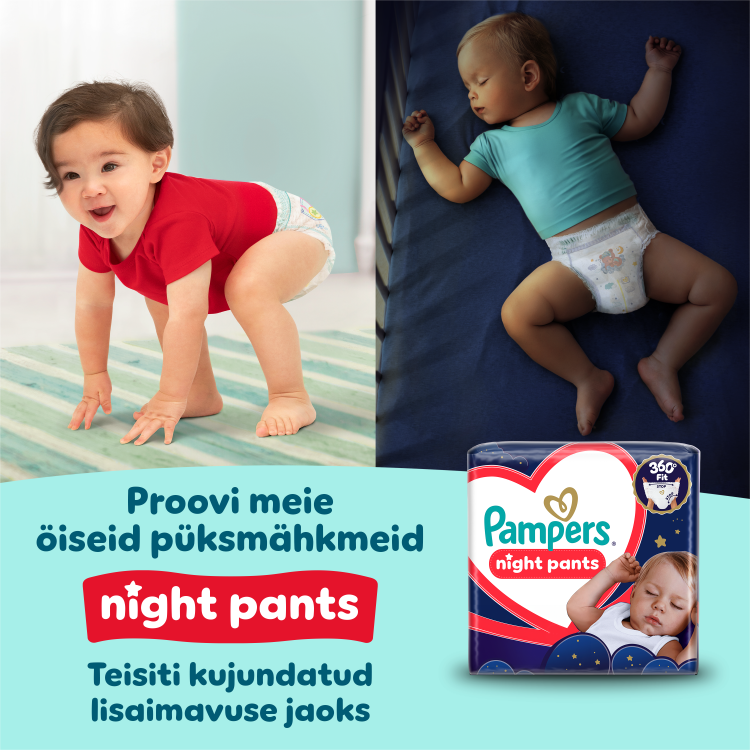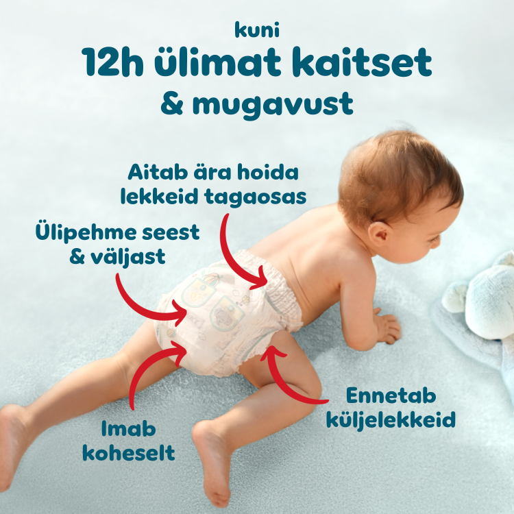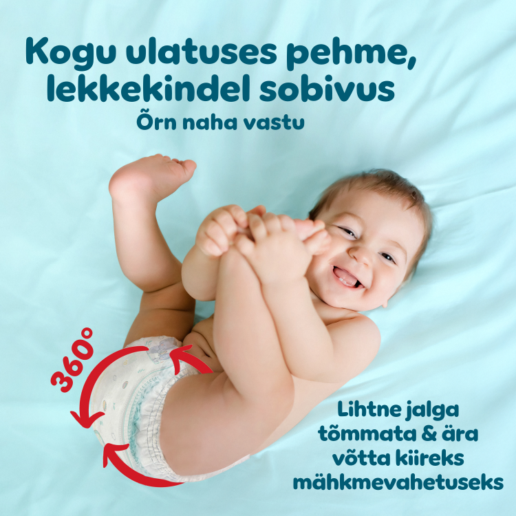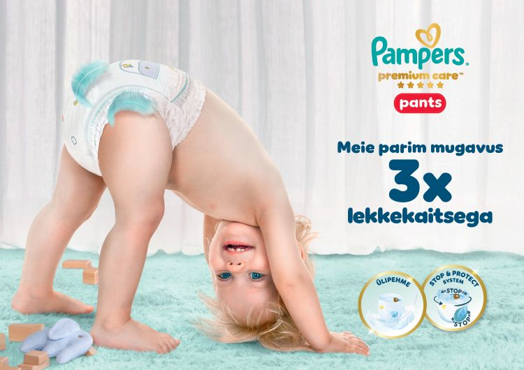 Kui beebi muutub aktiivsemaks, vajad iga liigutuse puhul mugavalt istuvat mähet, mis pakub ka usaldusväärset kaitset. Anna oma beebile Pampersi parim mugavus ja lekkekaitse Pampersi Premium Care’i püksmähkmetega: nende lekkekindlad pehmed äärised kaitsevad punetuse ja lekete eest, 360° ülipehme värvel paindub sinu vingerdava beebi kehakuju järgi, kui ta maailma avastab, ning ainulaadne kaitsetasku Stop & Protect aitab vältida lekkeid mähkme tagaosas. Nagu kõiki Pampersi püksmähkmeid, on ka Pampers Premium Care’i püksmähkmeid kerge vahetada isegi siis, kui beebi on väga liikuv: need tuleb jalgapanekuks vaid üles tõmmata, lihtsaks eemaldamiseks küljelt lahti rebida ning hõlpsaks äraviskamiseks kokku rullida ja teibiga kinnitada. Sulle on kõige tähtsam sinu beebi ohutus. Pampersile samuti: Pampers Premium Care’i püksmähkmed on dermatoloogiliselt testitud ja saanud Skin Health Alliance'i dermatoloogide heakskiidu. Kas soovid Pampersi kasutatavate koostisosade kohta rohkem teada saada? Külasta veebisaiti pampers.com.