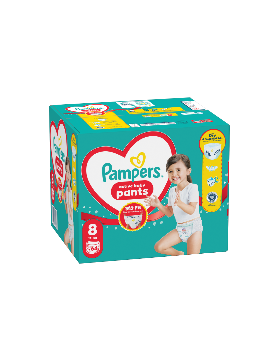 Kui beebi muutub aktiivsemaks, vajad iga liigutuse puhul mugavalt istuvat mähet, mis pakub ka usaldusväärset kaitset. Tänu revolutsioonilisele süsteemile Stop & Protect pakuvad Pampers Active Baby püksmähkmed parimat 360° ulatuses lekkekindlat istuvust nii päeval kui ka öösel! Pampers Active Baby püksmähkmete süsteem Stop & Protect hõlmab järgmist: lekkekindlad äärised külgedel, tasku, mis aitab vältida lekkeid tagaosas, 360° ulatuses veniv vöökoht, mis järgib sinu lapse kehakuju, kui ta ringi liigub, ning üliimav sisekiht, mis pakub kuni 12-tunnist kaitset. Nagu teisigi Pampersi püksmähkmeid, on ka Pampers Active Baby püksmähkmeid lihtne vahetada isegi siis, kui beebi on väga liikuv: need tuleb jalgapanekuks ainult üles tõmmata, lihtsaks eemaldamiseks küljelt lahti rebida ning hõlpsaks äraviskamiseks kokku rullida ja teibiga kinnitada. Sulle on kõige tähtsam sinu beebi ohutus. Pampersile samuti: Pampers Active Baby püksmähkmed on dermatoloogiliselt testitud ja saanud Skin Health Alliance'i dermatoloogide heakskiidu. Kas soovid Pampersi kasutatavate koostisosade kohta rohkem teada saada? Külasta veebisaiti pampers.com.